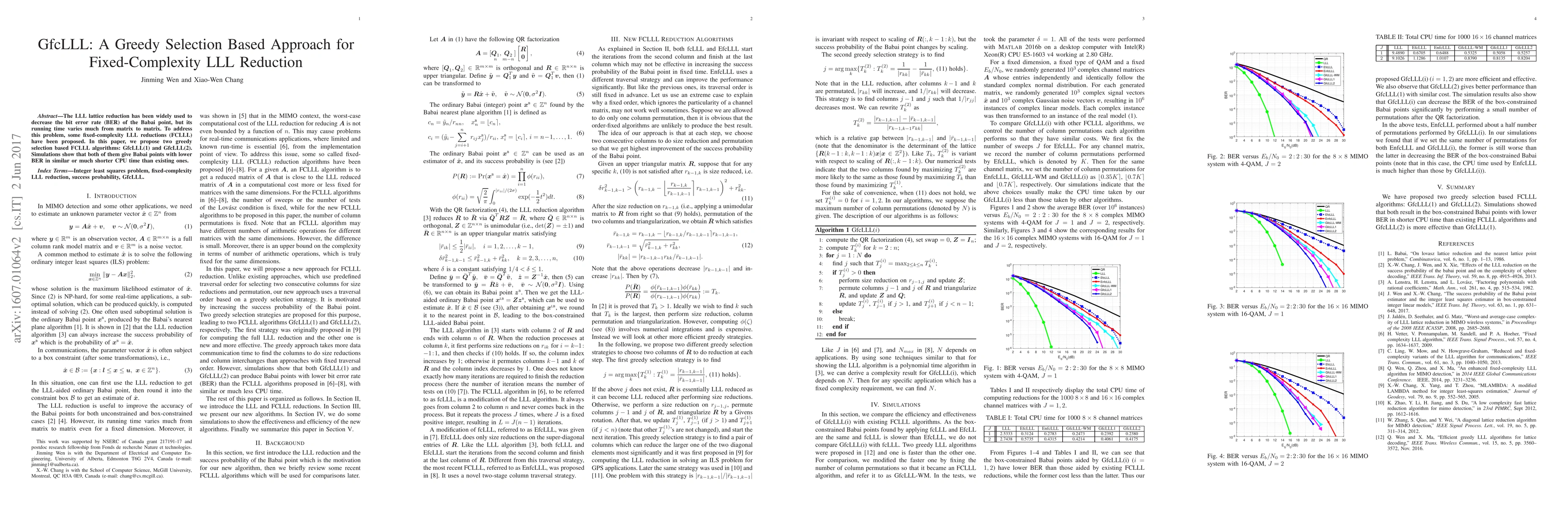 This paper proposes two new greedy selection based fixed-complexity LLL reduction algorithms, GfcLLL(1) and GfcLLL(2), which aim to reduce the bit error rate of the Babai point more efficiently than existing methods, often in shorter CPU times. Simulation results indicate improved performance in terms of BER reduction.