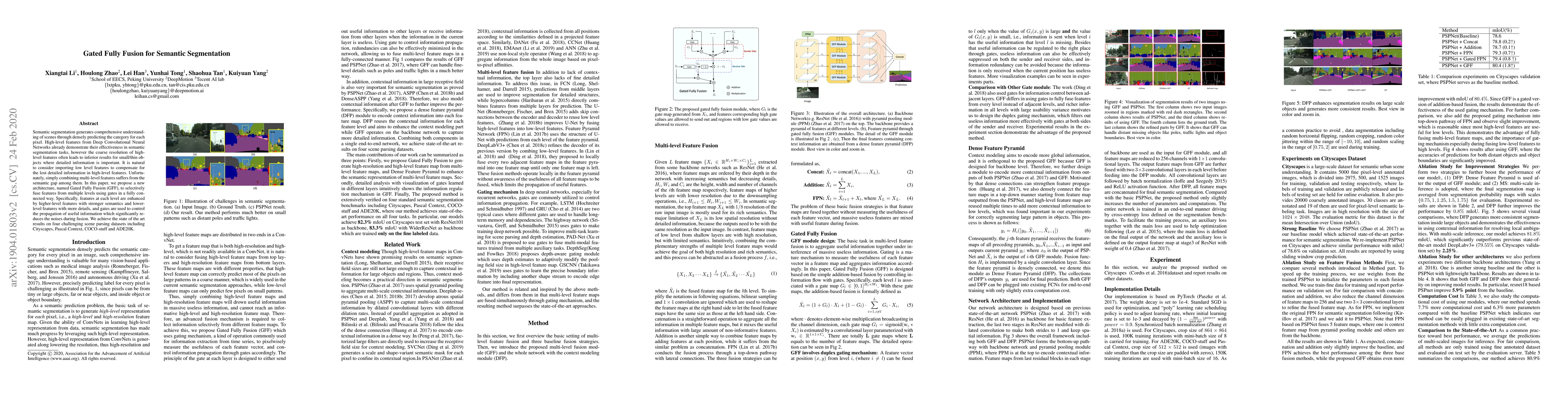 This paper proposes Gated Fully Fusion (GFF) for semantic segmentation, a method that combines features from multiple levels using gates to selectively fuse information and reduce noise. It achieves state-of-the-art results on four challenging scene parsing datasets.