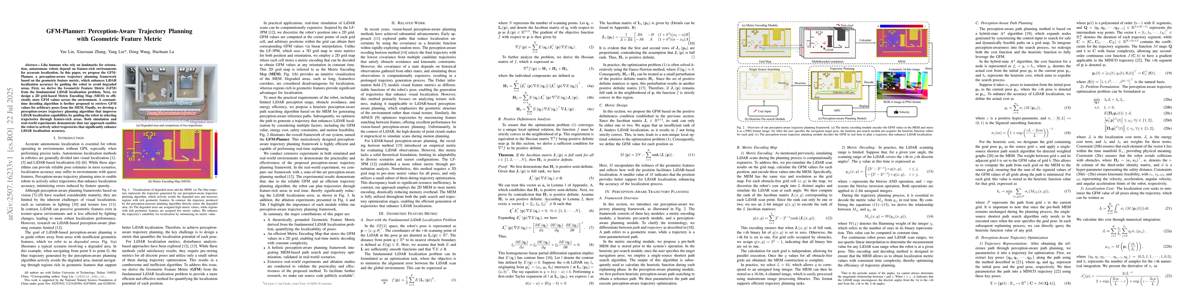 The paper proposes GFM-Planner, a perception-aware trajectory planning framework based on the geometric feature metric, enhancing LiDAR localization accuracy by guiding robots to avoid degraded areas. It derives the Geometric Feature Metric (GFM), designs a 2D grid-based Metric Encoding Map (MEM), and develops a perception-aware trajectory planning algorithm.