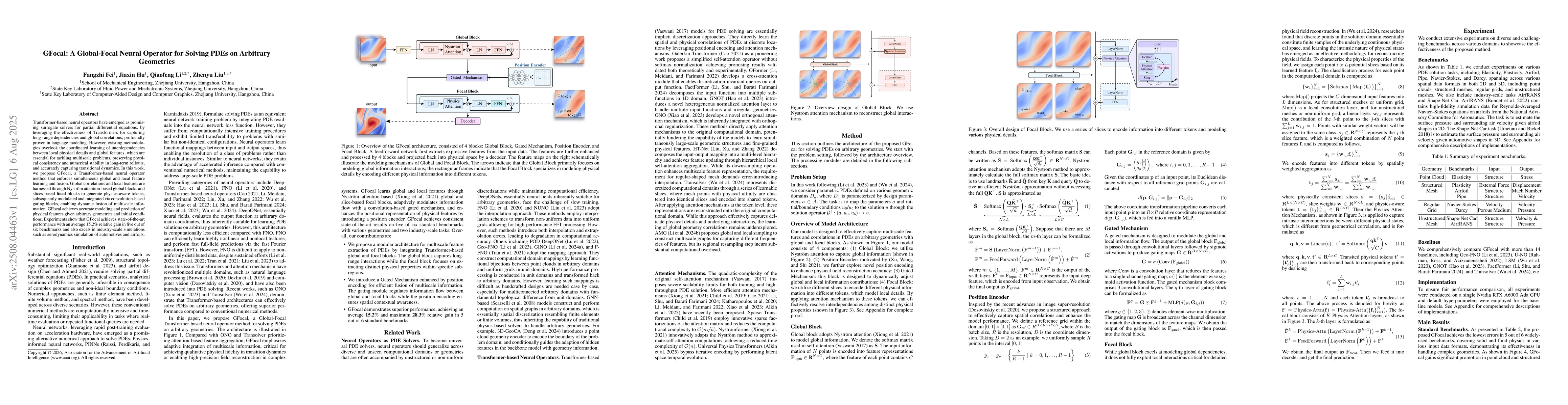 Transformer-based neural operators have emerged as promising surrogate solvers for partial differential equations, by leveraging the effectiveness of Transformers for capturing long-range dependencies and global correlations, profoundly proven in language modeling. However, existing methodologies overlook the coordinated learning of interdependencies between local physical details and global features, which are essential for tackling multiscale problems, preserving physical consistency and numerical stability in long-term rollouts, and accurately capturing transitional dynamics. In this work, we propose GFocal, a Transformer-based neural operator method that enforces simultaneous global and local feature learning and fusion. Global correlations and local features are harnessed through Nystr\"{o}m attention-based \textbf{g}lobal blocks and slices-based \textbf{focal} blocks to generate physics-aware tokens, subsequently modulated and integrated via convolution-based gating blocks, enabling dynamic fusion of multiscale information. GFocal achieves accurate modeling and prediction of physical features given arbitrary geometries and initial conditions. Experiments show that GFocal achieves state-of-the-art performance with an average 15.2\% relative gain in five out of six benchmarks and also excels in industry-scale simulations such as aerodynamics simulation of automotives and airfoils.