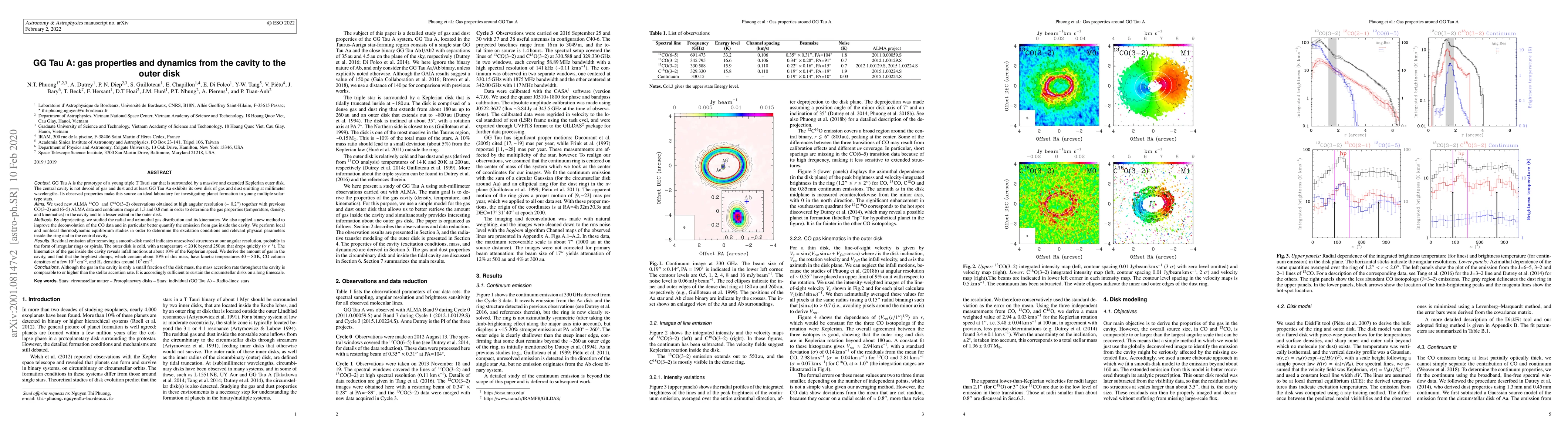 We used new ALMA $^{13}$CO and C$^{18}$O(3-2) observations obtained at high angular resolution ($\sim$0.2") together with previous CO(3-2) and (6-5) ALMA data and continuum maps at 1.3 and 0.8 mm in order to determine the gas properties (temperature, density, and kinematics) in the cavity and to a lesser extent in the outer disk of GG Tau A, the prototype of a young triple T Tauri star that is surrounded by a massive and extended Keplerian outer disk. By deprojecting, we studied the radial and azimuthal gas distribution and its kinematics. We also applied a new method to improve the deconvolution of the CO data and in particular better quantify the emission from gas inside the cavity. We perform local and nonlocal thermodynamic equilibrium studies in order to determine the excitation conditions and relevant physical parameters inside the ring and in the central cavity. Residual emission after removing a smooth-disk model indicates unresolved structures at our angular resolution, probably in the form of irregular rings or spirals. The outer disk is cold, with a temperature $<20$ K beyond 250 au that drops quickly (r$^{-1}$). The kinematics of the gas inside the cavity reveals infall motions at about 10% of the Keplerian speed. We derive the amount of gas in the cavity, and find that the brightest clumps, which contain about 10% of this mass, have kinetic temperatures 40$-$80 K, CO column densities of a few 10$^{17}$ cm$^{-2}$, and H$_2$ densities around 10$^7$ cm$^{-3}$. Although the gas in the cavity is only a small fraction of the disk mass, the mass accretion rate throughout the cavity is comparable to or higher than the stellar accretion rate. It is accordingly sufficient to sustain the circumstellar disks on a long timescale.