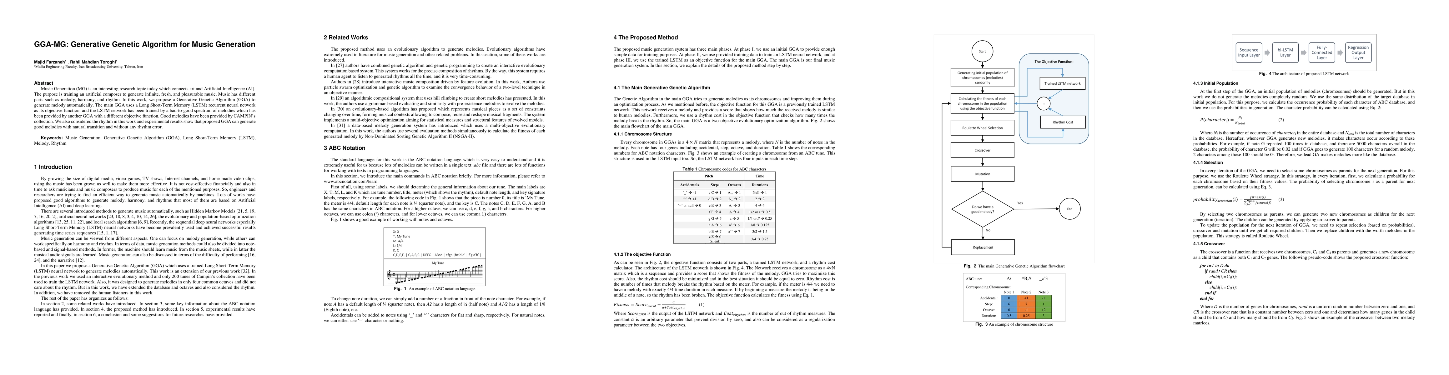 This paper proposes a Generative Genetic Algorithm (GGA) for music generation, utilizing an LSTM neural network to automatically create melodies. The GGA method successfully generates melodies with natural transitions and minimal rhythm errors, demonstrating the potential of AI in composing music.