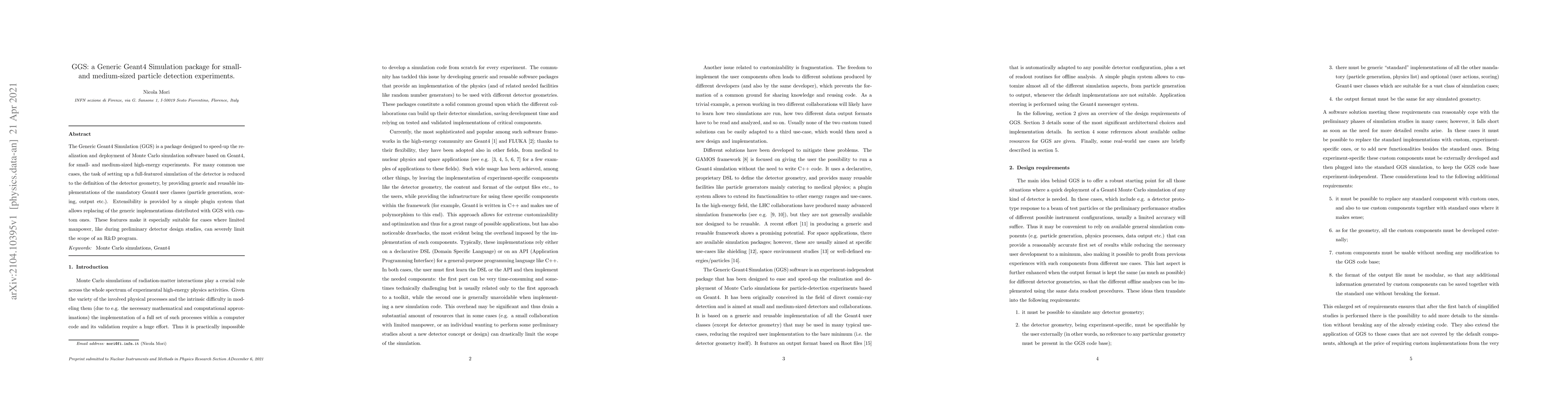 The Generic Geant4 Simulation (GGS) package accelerates the setup of Monte Carlo simulations for small- and medium-sized high-energy experiments, simplifying detector geometry definition and offering extensibility through a plugin system. It is particularly useful for preliminary detector design studies with limited resources.