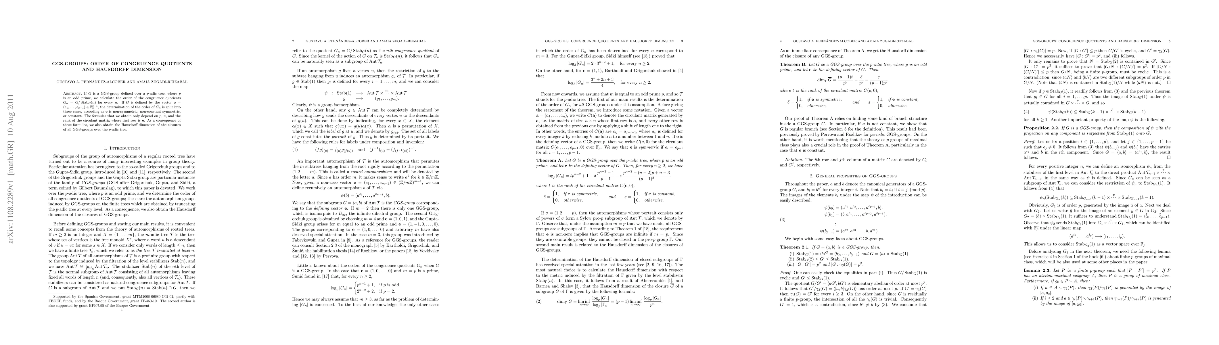 If G is a GGS-group defined over a p-adic tree, where p is an odd prime, we calculate the order of the congruence quotients $G_n=G/\Stab_G(n)$ for every n. If G is defined by the vector $e=(e_1,...,e_{p-1})\in\F_p^{p-1}$, the determination of the order of $G_n$ is split into three cases, according as e is non-symmetric, non-constant symmetric, or constant. The formulas that we obtain only depend on p, n, and the rank of the circulant matrix whose first row is e. As a consequence of these formulas, we also obtain the Hausdorff dimension of the closures of all GGS-groups over the p-adic tree.