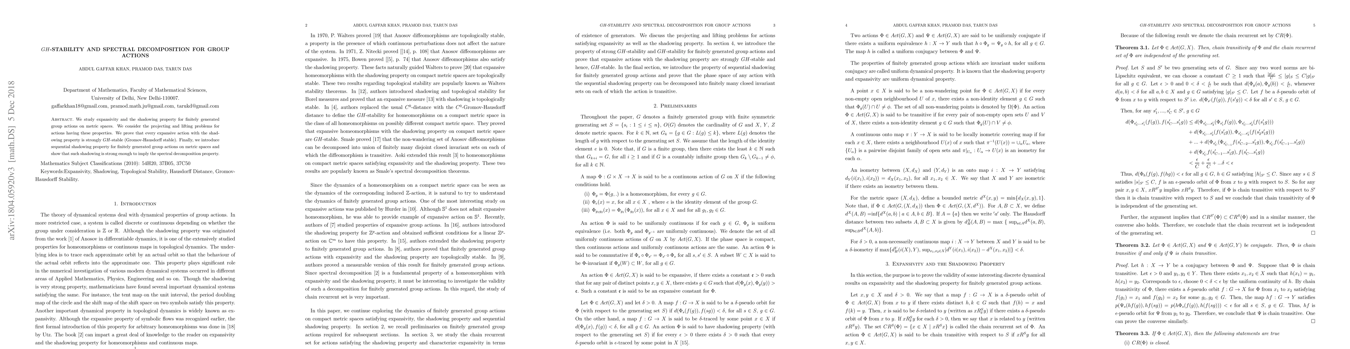 This paper explores expansivity and the shadowing property in finitely generated group actions on metric spaces, proving that expansive actions with the shadowing property are strongly GH-stable. It also introduces the sequential shadowing property and demonstrates its implication for the spectral decomposition property.