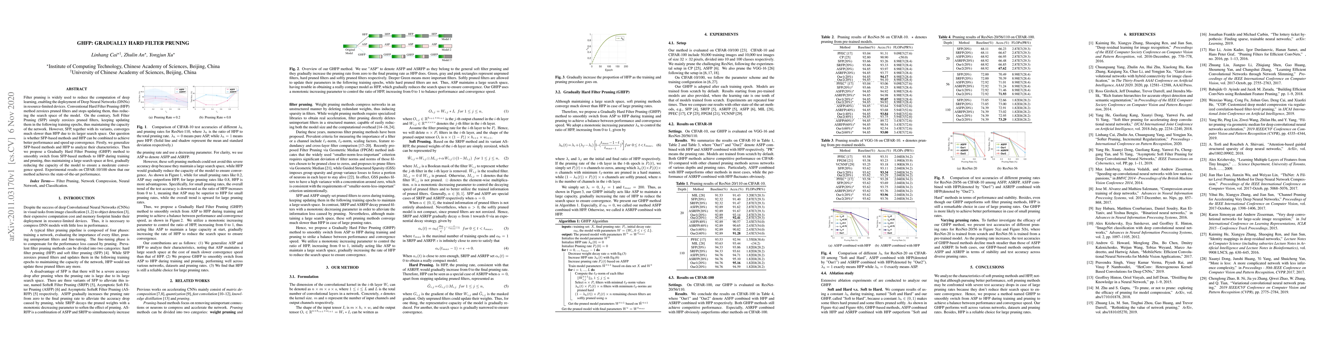 This paper proposes Gradually Hard Filter Pruning (GHFP), a method that combines Soft Filter Pruning and Hard Filter Pruning to achieve state-of-the-art performance on CIFAR-10/100 while reducing convergence time.