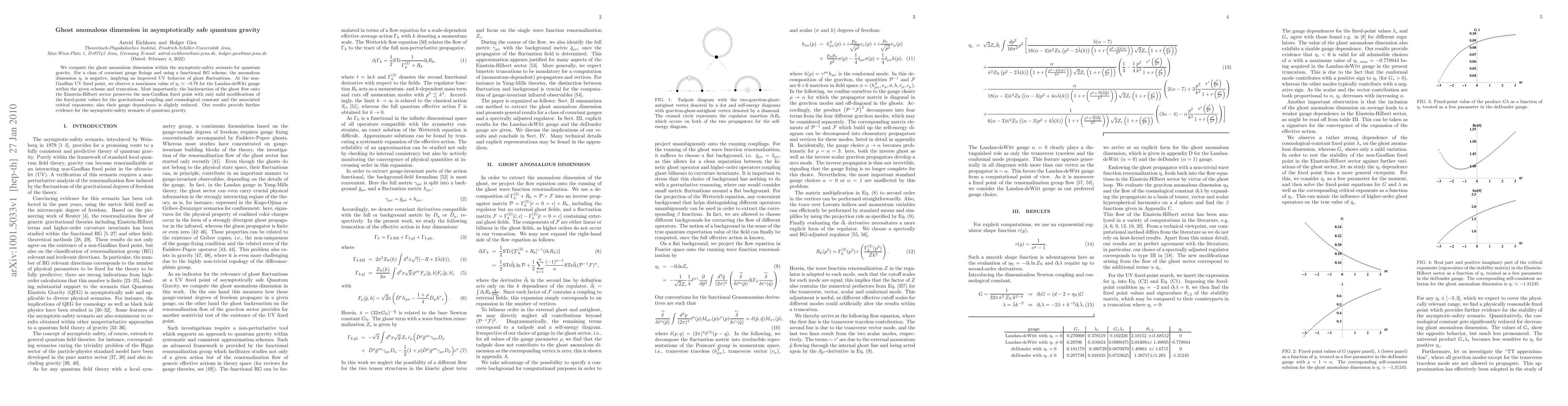 This paper computes the ghost anomalous dimension in the context of asymptotically safe quantum gravity, finding that it is negative, which enhances the ultraviolet behavior of ghost fluctuations. The study confirms the preservation of the non-Gaussian fixed point with minor modifications, supporting the asymptotic-safety scenario for quantum gravity.