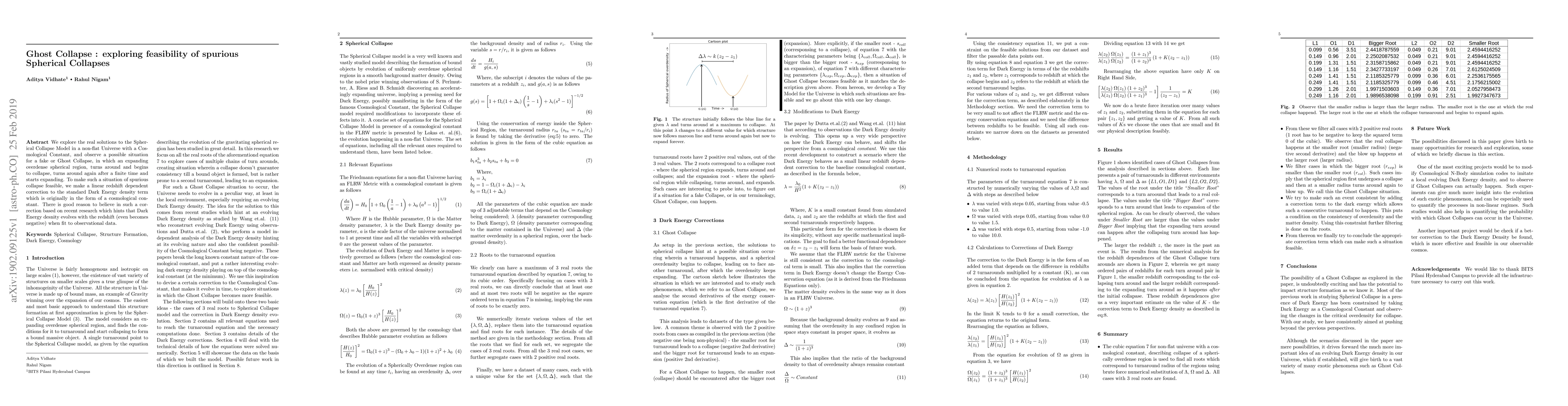 We explore the real solutions to the Spherical Collapse Model in a non-flat Universe with a Cosmological Constant, and observe a possible situation for a fake or Ghost Collapse, in which an expanding overdense spherical region, turns around and begins to collapse, turns around again after a finite time and starts expanding. To make such a situation of spurious collapse feasible, we make a linear redshift dependent correction to the standard Dark Energy density term which is originally in the form of a cosmological constant. There is good reason to believe in such a correction based on recent research which hints that Dark Energy desnity evolves with the redshift (even becomes negative) when fit to observational data.