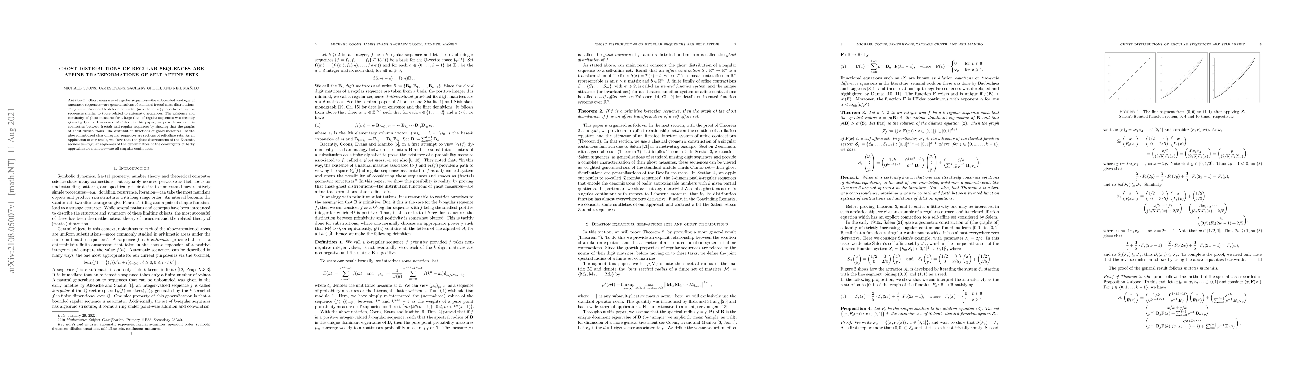 Ghost measures of regular sequences---the unbounded analogue of automatic sequences---are generalisations of standard fractal mass distributions. They were introduced to determine fractal (or self-similar) properties of regular sequences similar to those related to automatic sequences. The existence and continuity of ghost measures for a large class of regular sequences was recently given by Coons, Evans and Ma\~nibo. In this paper, we provide an explicit connection between fractals and regular sequences by showing that the graphs of ghost distributions---the distribution functions of ghost measures---of the above-mentioned class of regular sequences are sections of self-affine sets. As an application of our result, we show that the ghost distributions of the Zaremba sequences---regular sequences of the denominators of the convergents of badly approximable numbers---are all singular continuous.