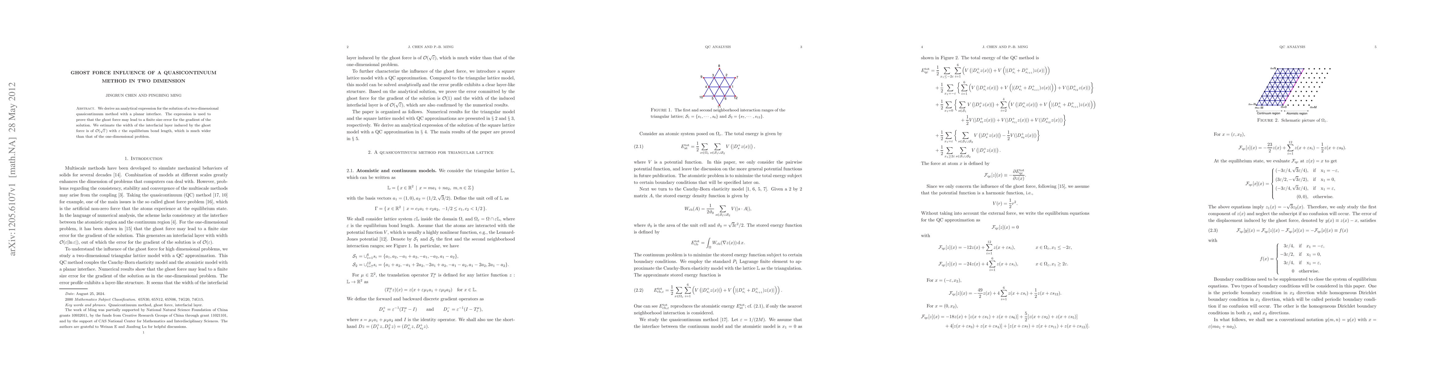This paper derives an analytical expression for a two-dimensional quasicontinuum method, demonstrating that ghost forces can cause finite size errors in gradient solutions. It estimates the interfacial layer width induced by ghost forces to be $\mathcal{O}(\sqrt{\eps})$, significantly wider than in one-dimensional problems.