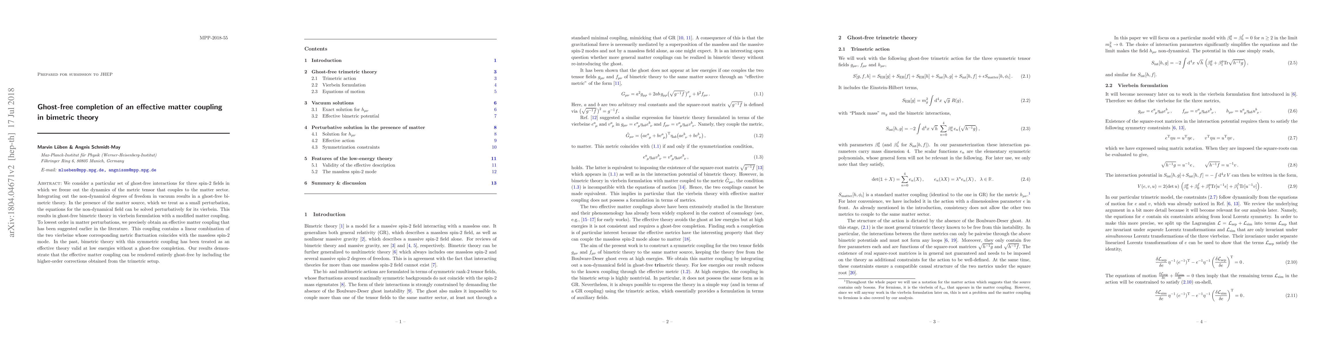 We consider a particular set of ghost-free interactions for three spin-2 fields in which we freeze out the dynamics of the metric tensor that couples to the matter sector. Integrating out the non-dynamical degrees of freedom in vacuum results in a ghost-free bimetric theory. In the presence of the matter source, which we treat as a small perturbation, the equations for the non-dynamical field can be solved perturbatively for its vierbein. This results in ghost-free bimetric theory in vierbein formulation with a modified matter coupling. To lowest order in matter perturbations, we precisely obtain an effective matter coupling that has been suggested earlier in the literature. This coupling contains a linear combination of the two vierbeine whose corresponding metric fluctuation coincides with the massless spin-2 mode. In the past, bimetric theory with this symmetric coupling has been treated as an effective theory valid at low energies without a ghost-free completion. Our results demonstrate that the effective matter coupling can be rendered entirely ghost-free by including the higher-order corrections obtained from the trimetric setup.