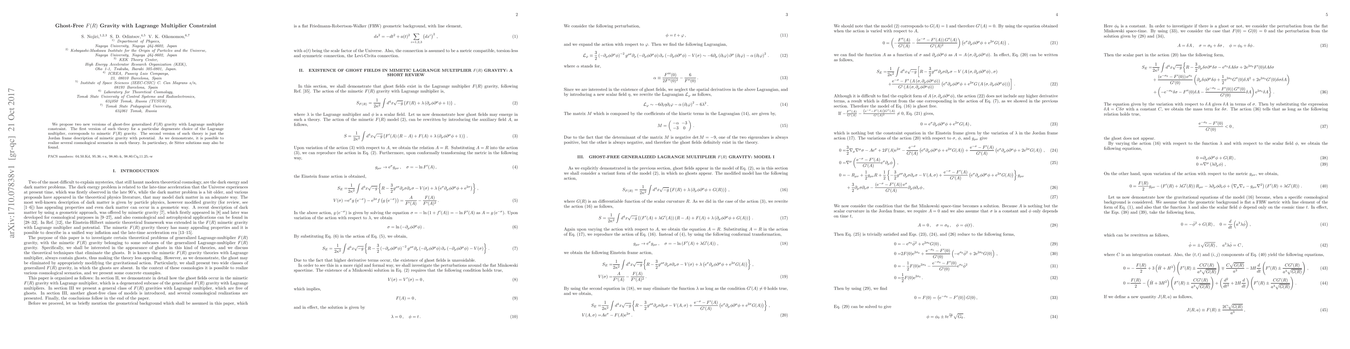 This paper proposes two new versions of ghost-free generalized $F(R)$ gravity using Lagrange multiplier constraints, including a mimetic $F(R)$ gravity variant and a Jordan frame description of mimetic gravity with potential, demonstrating their applicability to various cosmological scenarios, including de Sitter solutions.
