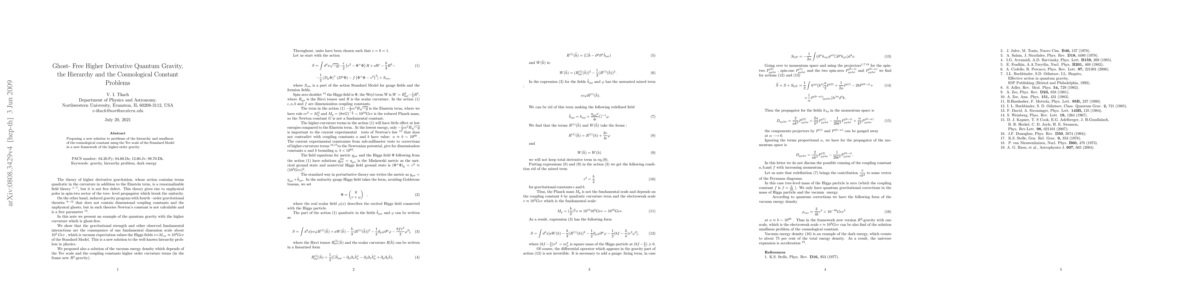 Proposing new solution problems of the hierarchy and smallness of the cosmological constant using the Tev scale of the Standard Model in new framework of the higher-order gravity.