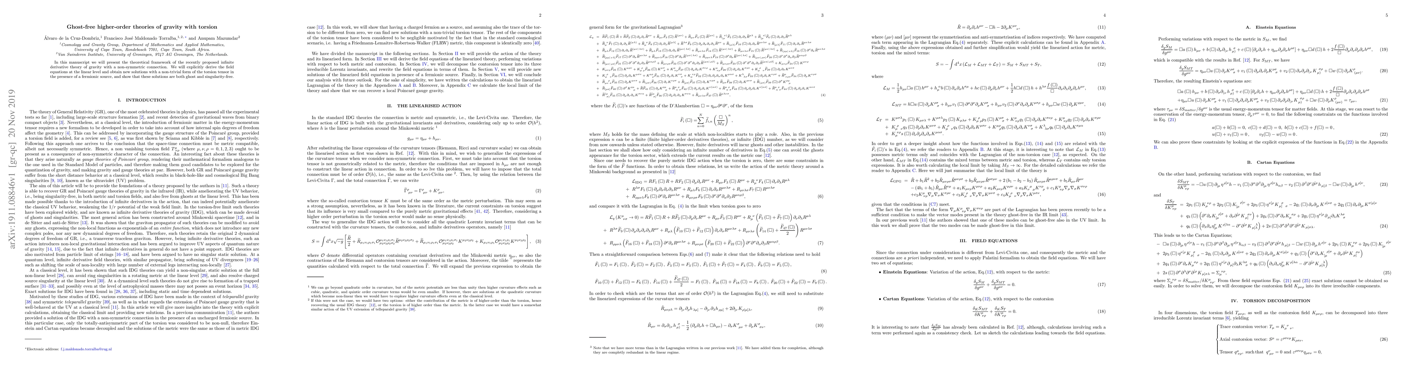 In this manuscript we will present the theoretical framework of the recently proposed infinite derivative theory of gravity with a non-symmetric connection. We will explicitly derive the field equations at the linear level and obtain new solutions with a non-trivial form of the torsion tensor in the presence of a fermionic source, and show that these solutions are both ghost and singularity-free.