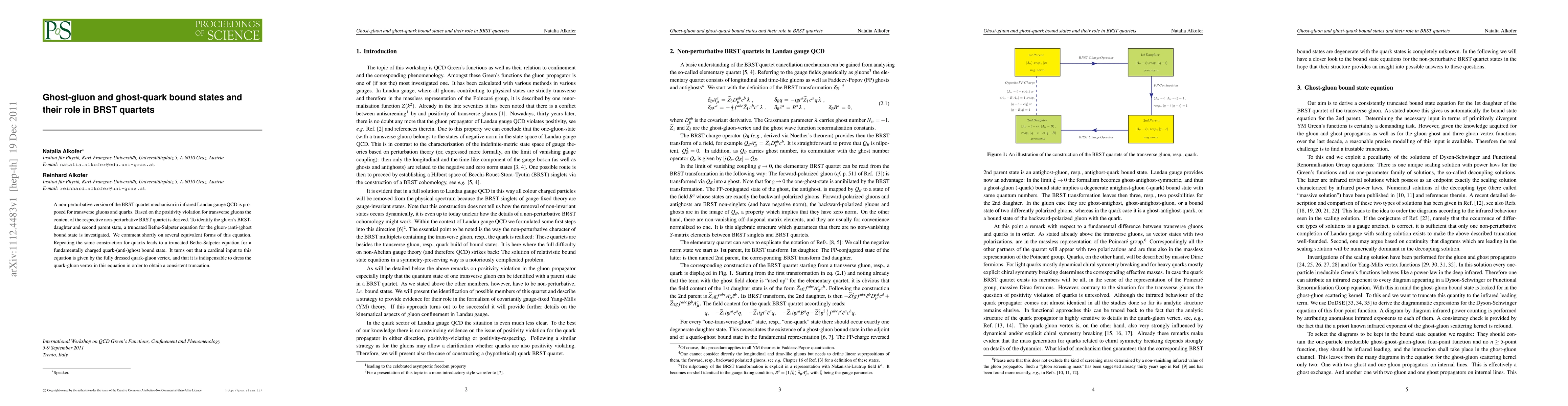 A non-perturbative version of the BRST quartet mechanism in infrared Landau gauge QCD is proposed for transverse gluons and quarks. Based on the positivity violation for transverse gluons the content of the respective non-perturbative BRST quartet is derived. To identify the gluon's BRST-daughter and second parent state, a truncated Bethe-Salpeter equation for the gluon-(anti-)ghost bound state is investigated. We comment shortly on several equivalent forms of this equation. Repeating the same construction for quarks leads to a truncated Bethe-Salpeter equation for a fundamentally charged quark-(anti-)ghost bound state. It turns out that a cardinal input to this equation is given by the fully dressed quark-gluon vertex, and that it is indispensable to dress the quark-gluon vertex in this equation in order to obtain a consistent truncation.