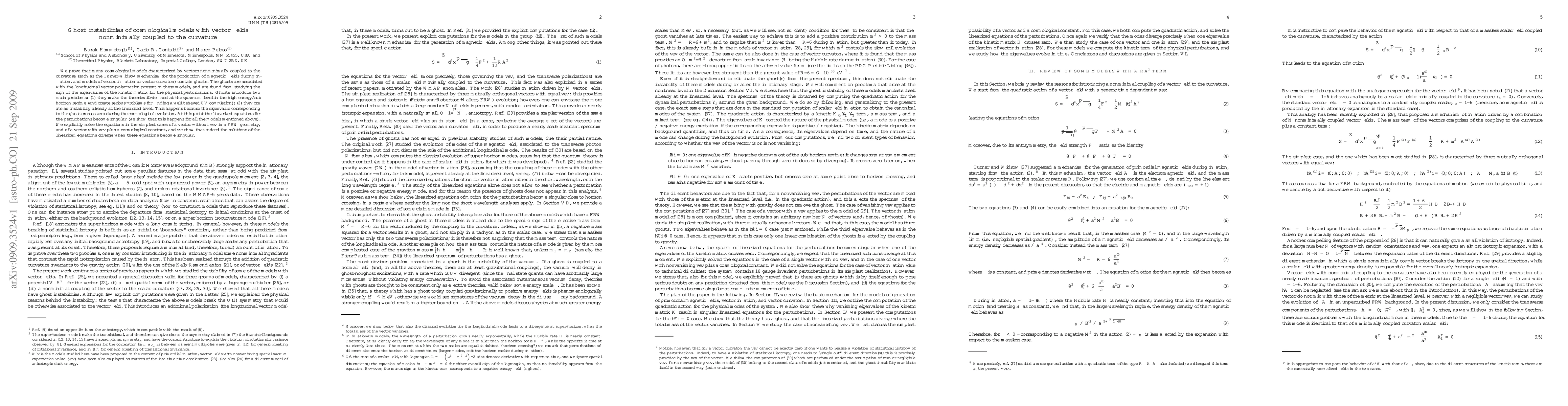 We prove that many cosmological models characterized by vectors nonminimally coupled to the curvature (such as the Turner-Widrow mechanism for the production of magnetic fields during inflation, and models of vector inflation or vector curvaton) contain ghosts. The ghosts are associated with the longitudinal vector polarization present in these models, and are found from studying the sign of the eigenvalues of the kinetic matrix for the physical perturbations. Ghosts introduce two main problems: (1) they make the theories ill-defined at the quantum level in the high energy/sub horizon regime (and create serious problems for finding a well behaved UV completion); (2) they create an instability already at the linearized level. This happens because the eigenvalue corresponding to the ghost crosses zero during the cosmological evolution. At this point the linearized equations for the perturbations become singular (we show that this happens for all the models mentioned above). We explicitly solve the equations in the simplest cases of a vector without vev in a FRW geometry, and of a vector with vev plus a cosmological constant, and we show that indeed the solutions of the linearized equations diverge when these equations become singular.