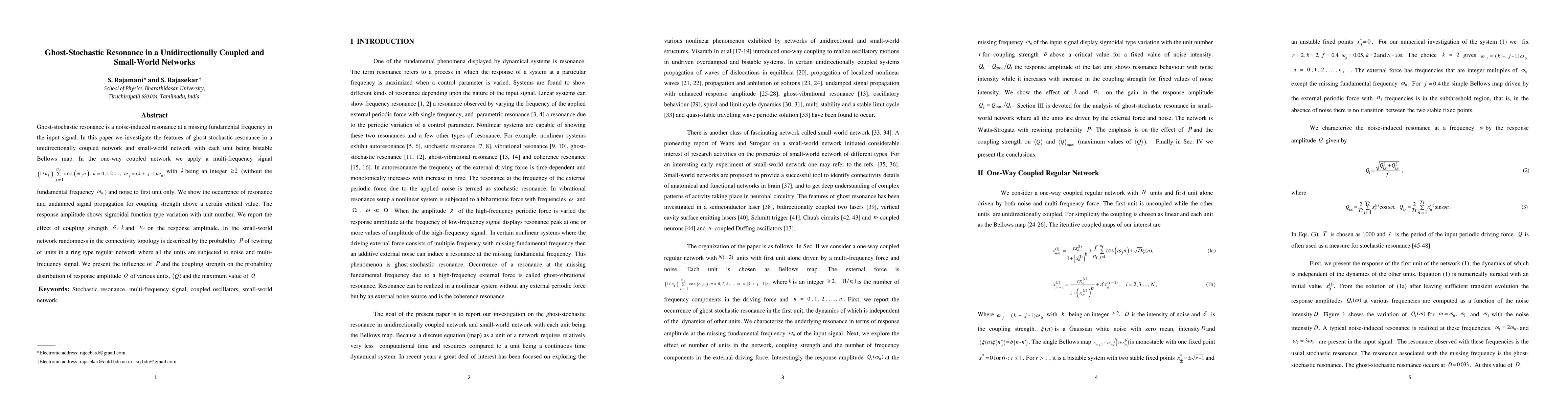 This paper explores ghost-stochastic resonance in unidirectionally coupled networks and small-world networks, where each unit operates as a bistable Bellows map. It investigates resonance and signal propagation under varying coupling strengths and noise conditions, revealing sigmoidal response amplitude variations and the influence of network topology on response amplitude distribution.