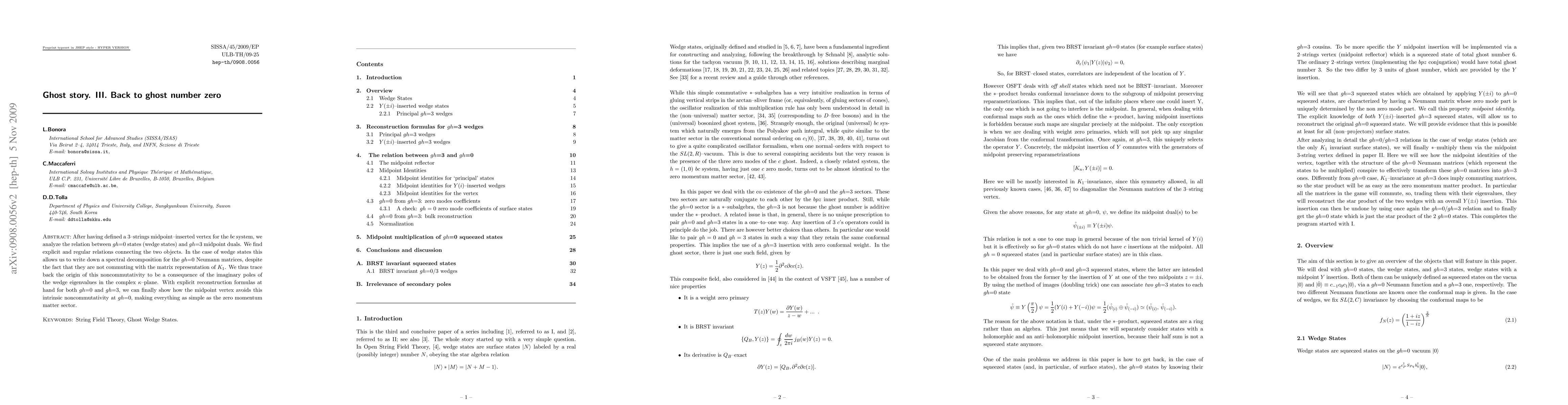 After having defined a 3-strings midpoint-inserted vertex for the bc system, we analyze the relation between gh=0 states (wedge states) and gh=3 midpoint duals. We find explicit and regular relations connecting the two objects. In the case of wedge states this allows us to write down a spectral decomposition for the gh=0 Neumann matrices, despite the fact that they are not commuting with the matrix representation of K1. We thus trace back the origin of this noncommutativity to be a consequence of the imaginary poles of the wedge eigenvalues in the complex k-plane. With explicit reconstruction formulas at hand for both gh=0 and gh=3, we can finally show how the midpoint vertex avoids this intrinsic noncommutativity at gh=0, making everything as simple as the zero momentum matter sector.