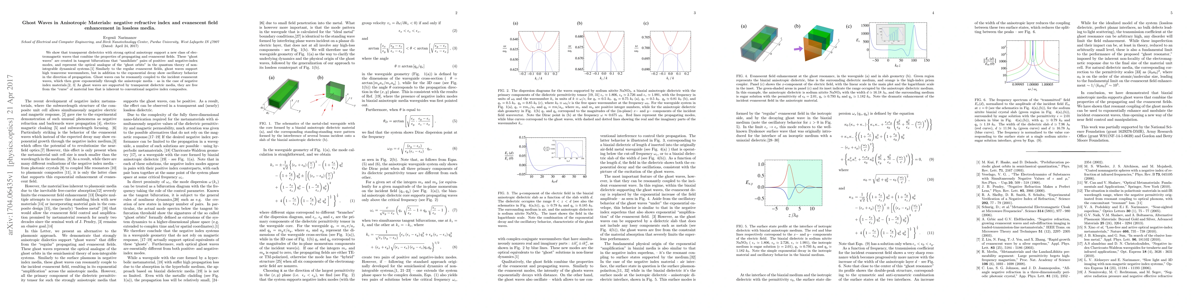 This paper explores "ghost waves" in anisotropic materials, revealing a new electromagnetic wave class that combines propagating and evanescent field properties. These waves, supported by transparent dielectrics, exhibit oscillatory behavior and can enhance evanescent fields without material loss, akin to negative refractive index materials.