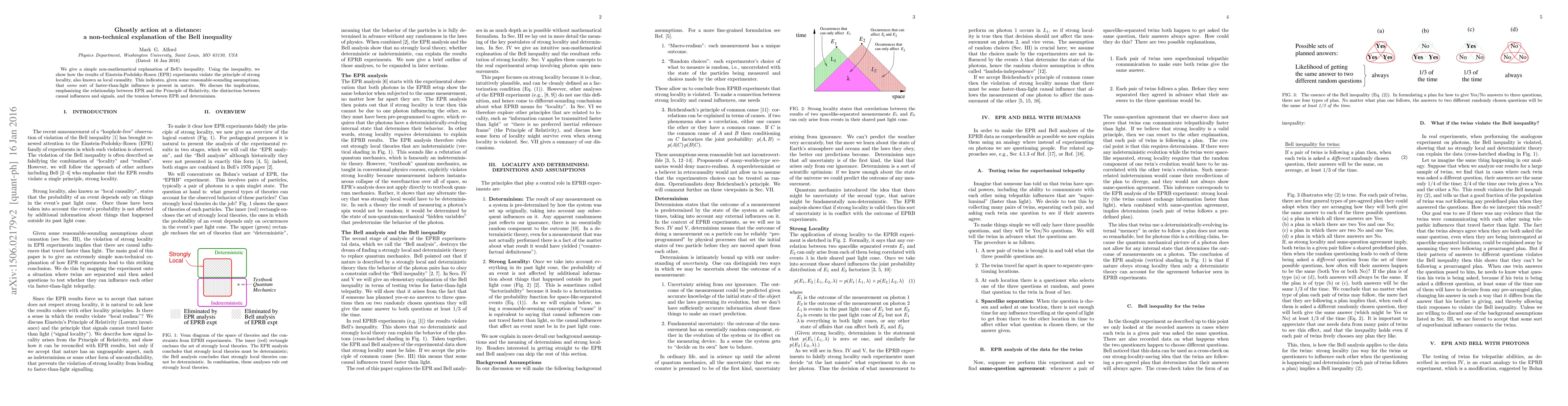 We give a simple non-mathematical explanation of Bell's inequality. Using the inequality, we show how the results of Einstein-Podolsky-Rosen (EPR) experiments violate the principle of strong locality, also known as local causality. This indicates, given some reasonable-sounding assumptions, that some sort of faster-than-light influence is present in nature. We discuss the implications, emphasizing the relationship between EPR and the Principle of Relativity, the distinction between causal influences and signals, and the tension between EPR and determinism.