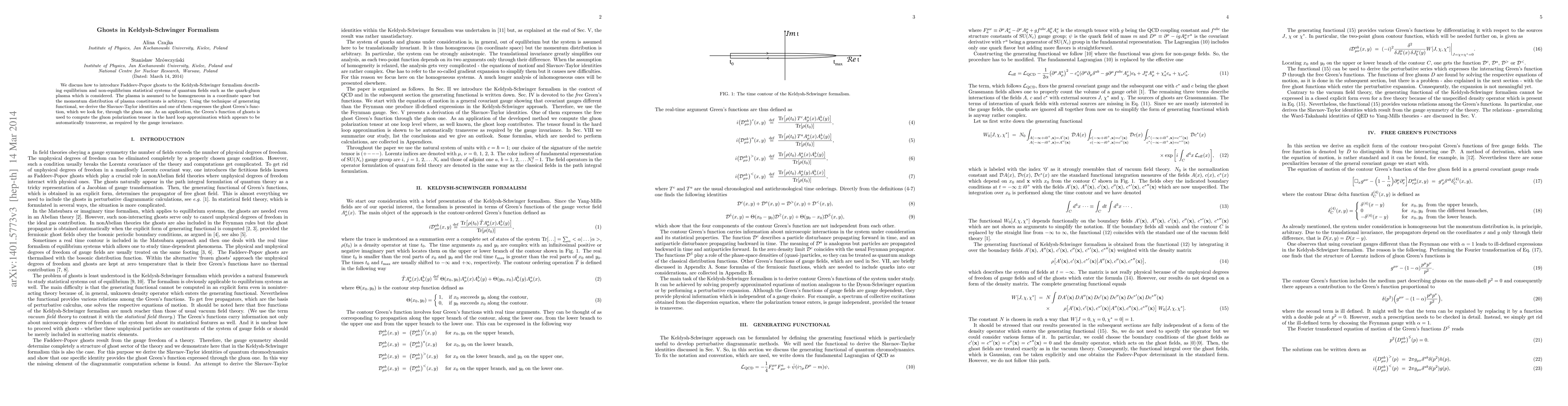 This paper introduces Faddeev-Popov ghosts into the Keldysh-Schwinger formalism to describe quantum field systems like the quark-gluon plasma. It derives Slavnov-Taylor identities and computes the gluon polarization tensor in the hard loop approximation, ensuring gauge invariance.