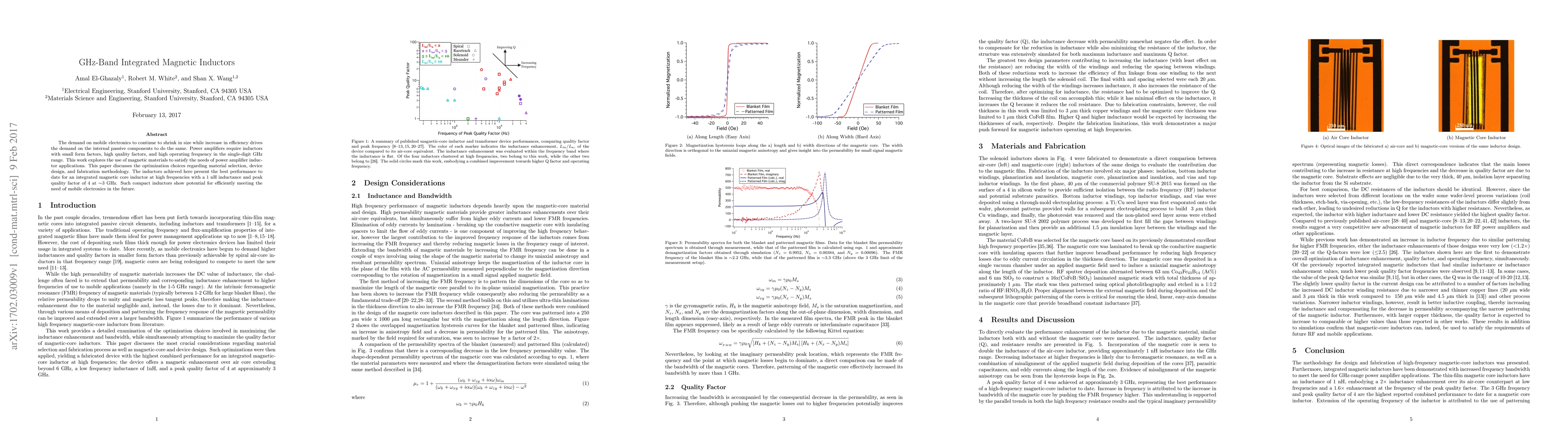 The demand on mobile electronics to continue to shrink in size while increase in efficiency drives the demand on the internal passive components to do the same. Power amplifiers require inductors with small form factors, high quality factors, and high operating frequency in the single-digit GHz range. This work explores the use of magnetic materials to satisfy the needs of power amplifier inductor applications. This paper discusses the optimization choices regarding material selection, device design, and fabrication methodology. The inductors achieved here present the best performance to date for an integrated magnetic core inductor at high frequencies with a 1 nH inductance and peak quality factor of 4 at ~3 GHz. Such compact inductors show potential for efficiently meeting the need of mobile electronics in the future.