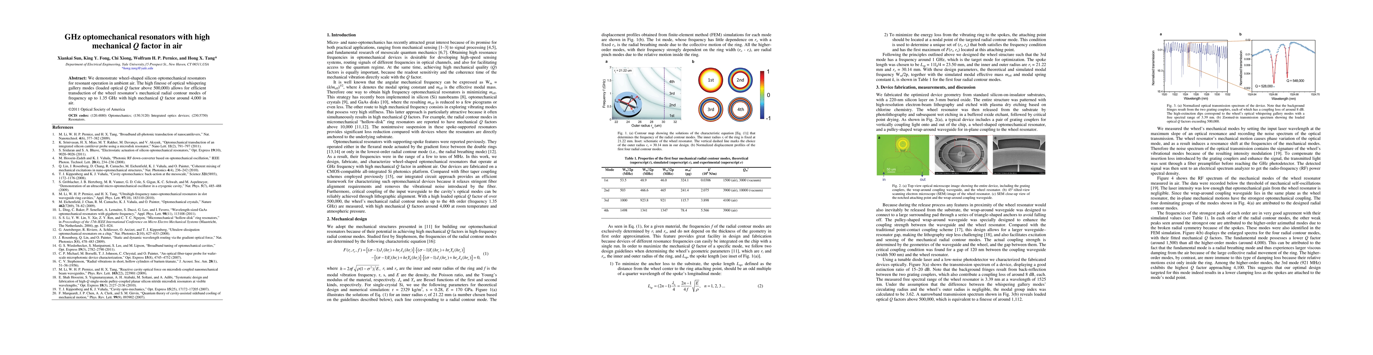 This paper presents wheel-shaped silicon optomechanical resonators operating in ambient air, achieving high optical Q factors over 500,000 and mechanical Q factors around 4,000 for GHz-scale radial contour modes. The design enables efficient transduction of mechanical vibrations through optical whispering gallery modes.