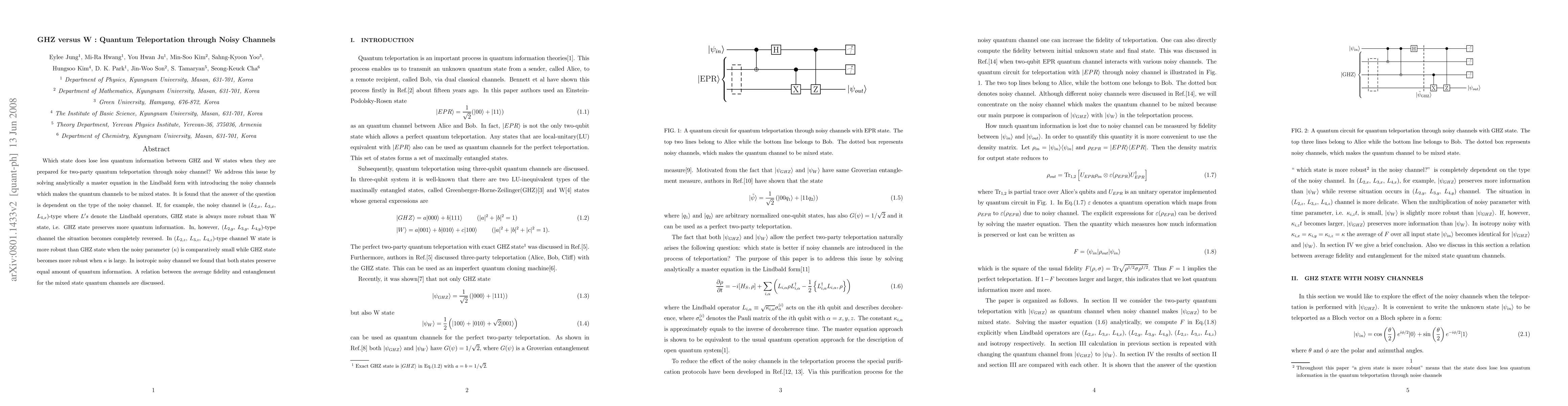 This paper investigates the quantum information loss in GHZ versus W states during two-party quantum teleportation through various noisy channels. The results show that the robustness of each state depends on the type of noise, with GHZ states generally preserving more information in some channels and W states being more robust in others.