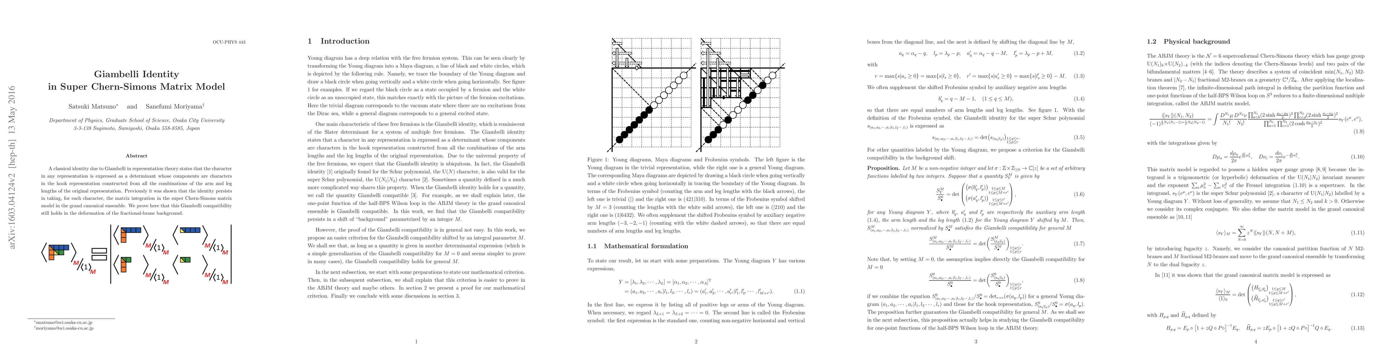 This paper proves that the classical Giambelli identity from representation theory remains valid in the super Chern-Simons matrix model, even under deformations by a fractional-brane background, maintaining the matrix integration in the grand canonical ensemble.