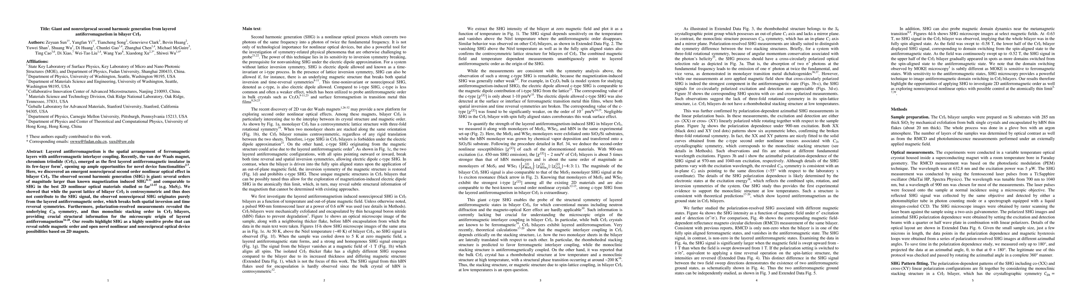 This paper reports a giant nonreciprocal second harmonic generation (SHG) effect in bilayer CrI3 due to its layered antiferromagnetic order, which breaks spatial inversion and time reversal symmetries. The observed SHG is significantly larger than typical magnetization-induced SHG and comparable to the best 2D nonlinear materials, highlighting its potential for novel optical device applications.