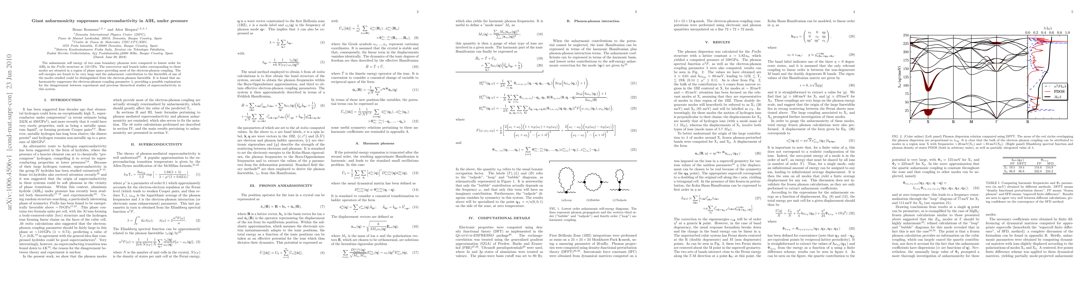 The anharmonic self energy of two zone boundary phonons were computed to lowest order for AlH$_3$ in the $Pm\bar 3n$ structure at 110 GPa. The wavevector and branch index corresponding to these modes are situated in a region of phase space providing most of the electron-phonon coupling. The self energies are found to be very large and the anharmonic contribution to the linewidth of one of the modes studied could be distinguished from the electron-phonon linewidth. It is found that anharmonicity suppresses the electron-phonon coupling parameter $\lambda$, providing a possible explanation for the disagreement between experiment and previous theoretical studies of superconductivity in this system.