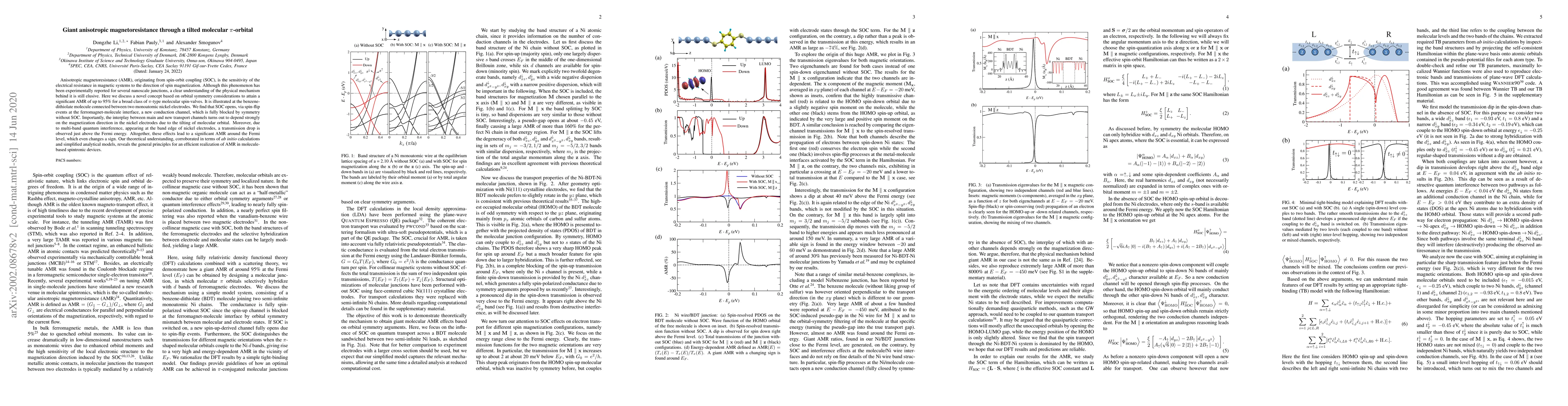 Researchers develop a theoretical understanding of giant anisotropic magnetoresistance in molecule-based spintronic devices, achieving up to 95% AMR through the interplay of molecular orbitals and spin-flip events.