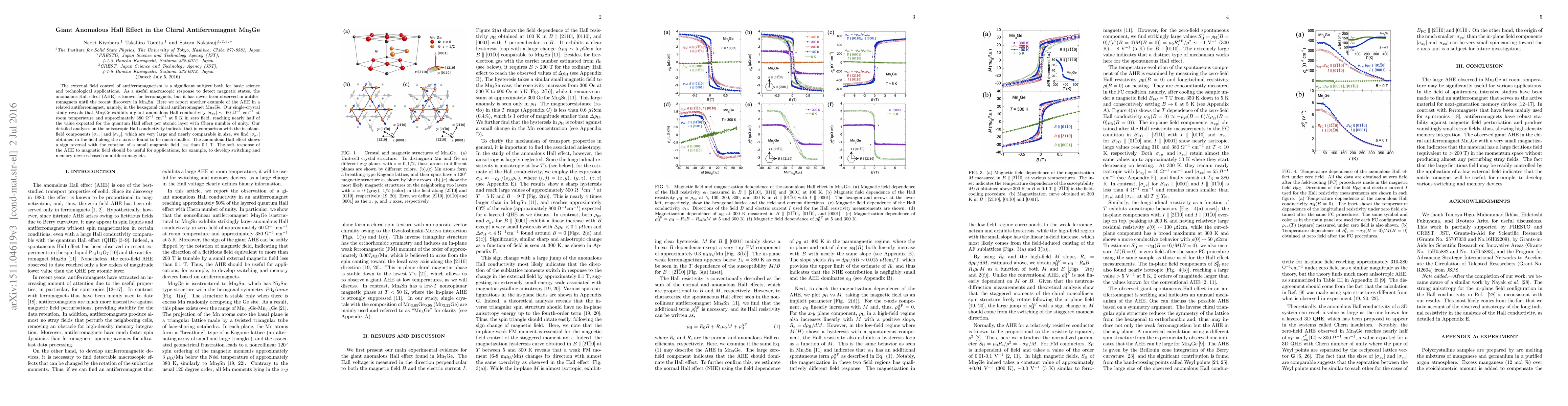 This paper reports the discovery of a giant anomalous Hall effect (AHE) in the chiral antiferromagnet Mn3Ge, demonstrating significant AHE at room temperature and low temperatures. The study finds that Mn3Ge exhibits exceptionally large anomalous Hall conductivity, suggesting potential for antiferromagnetic-based switching and memory devices.