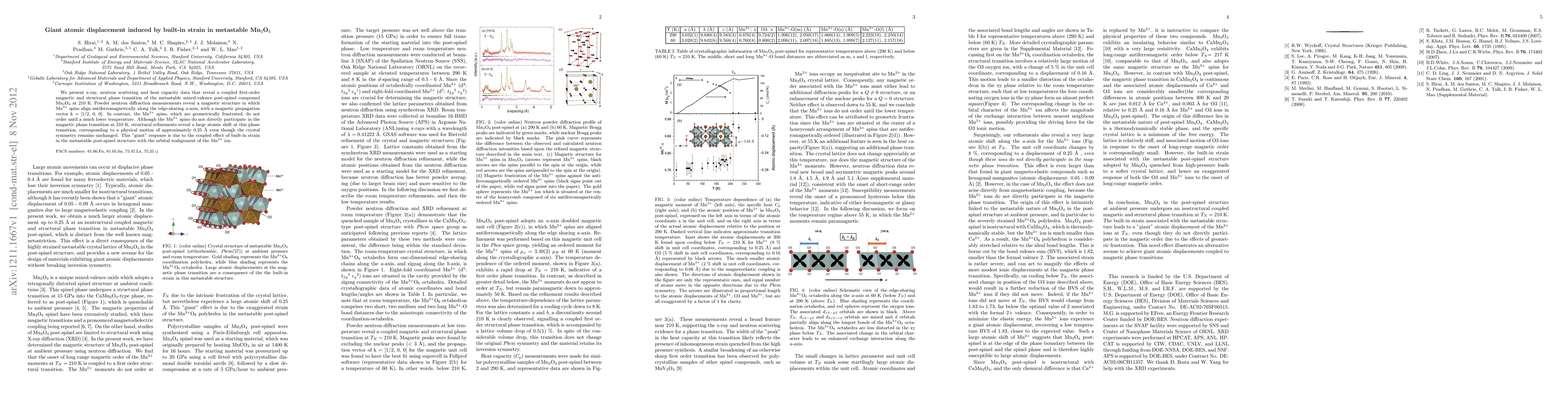 This study reveals a significant atomic displacement in metastable Mn$_3$O$_4$ at 210 K, driven by a coupled first-order magnetic and structural phase transition, despite unchanged crystal symmetry. The large atomic shift, attributed to built-in strain and orbital realignment, highlights the complex interplay between magnetic and structural properties in this compound.