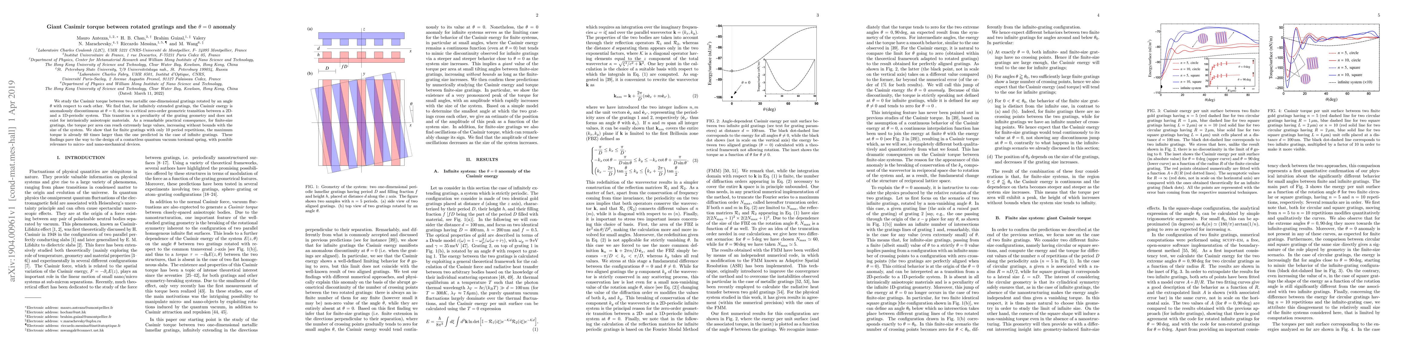 We study the Casimir torque between two metallic one-dimensional gratings rotated by an angle $\theta$ with respect to each other. We find that, for infinitely extended gratings, the Casimir energy is anomalously discontinuous at $\theta=0$, due to a critical zero-order geometric transition between a 2D- and a 1D-periodic system. This transition is a peculiarity of the grating geometry and does not exist for intrinsically anisotropic materials. As a remarkable practical consequence, for finite-size gratings, the torque per area can reach extremely large values, increasing without bounds with the size of the system. We show that for finite gratings with only 10 period repetitions, the maximum torque is already 60 times larger than the one predicted in the case of infinite gratings. These findings pave the way to the design of a contactless quantum vacuum torsional spring, with possible relevance to micro- and nano-mechanical devices.