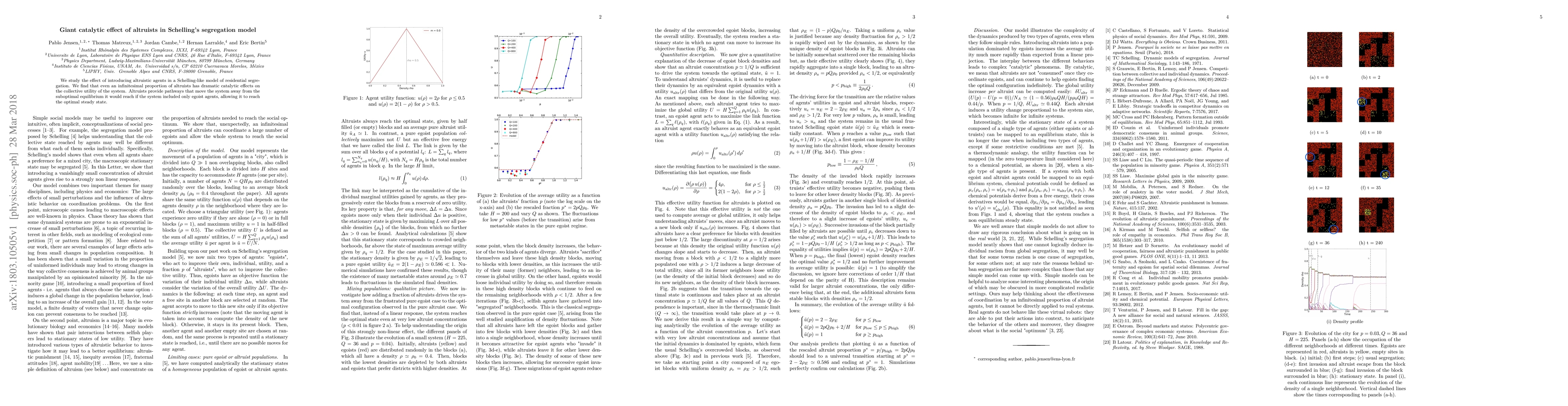 We study the effect of introducing altruistic agents in a Schelling-like model of residential segregation. We find that even an infinitesimal proportion of altruists has dramatic catalytic effects on the collective utility of the system. Altruists provide pathways that move the system away from the suboptimal equilibrium it would reach if the system included only egoist agents, allowing it to reach the optimal steady state.
