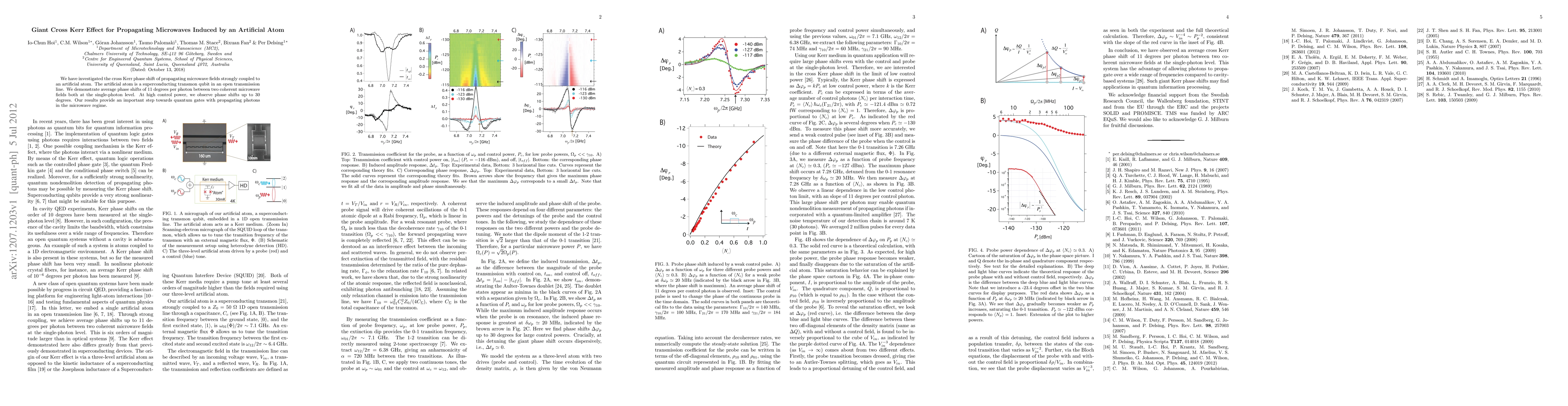 This paper investigates the cross Kerr effect for microwave fields strongly coupled to a superconducting transmon qubit, achieving average phase shifts of 11 degrees per photon at the single-photon level, with potential for up to 30 degrees, advancing the development of quantum gates using propagating microwave photons.