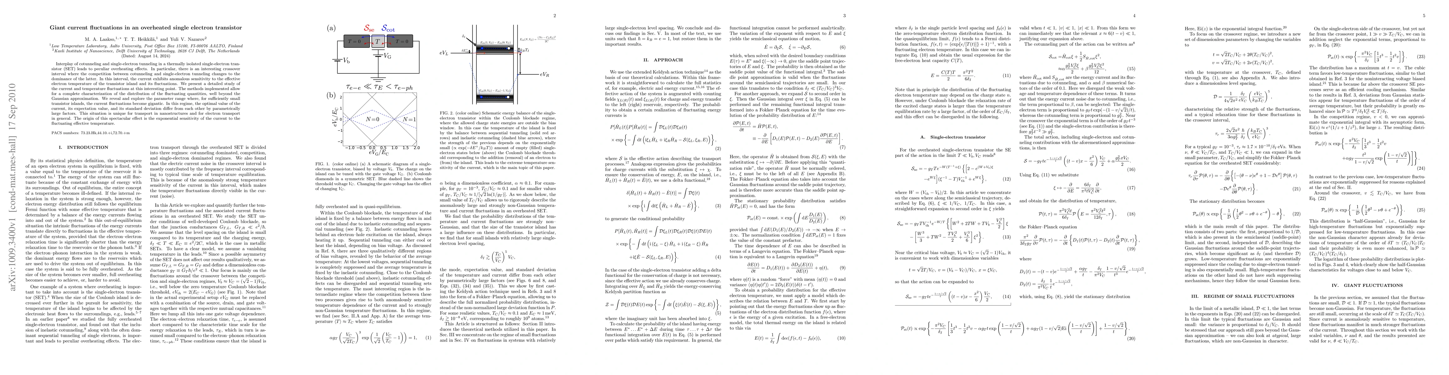 This paper investigates giant current fluctuations in an overheated single-electron transistor due to the interplay between cotunneling and single-electron tunneling. It reveals a regime where current fluctuations become exceptionally large, driven by the exponential sensitivity to temperature fluctuations, leading to a unique characterization of transport in nanostructures.