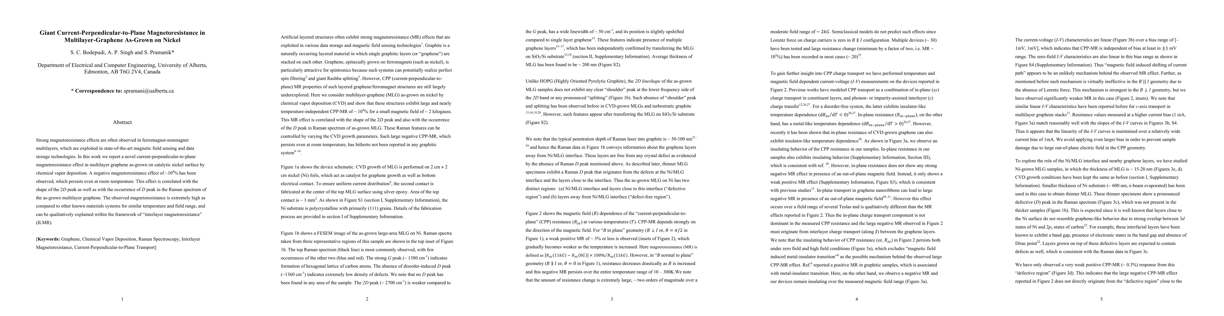 This paper reports a significant current-perpendicular-to-plane magnetoresistance effect in multilayer graphene grown on nickel, achieving a negative magnetoresistance of 10^4% at room temperature, which is explained by interlayer magnetoresistance and correlated with Raman spectral features.