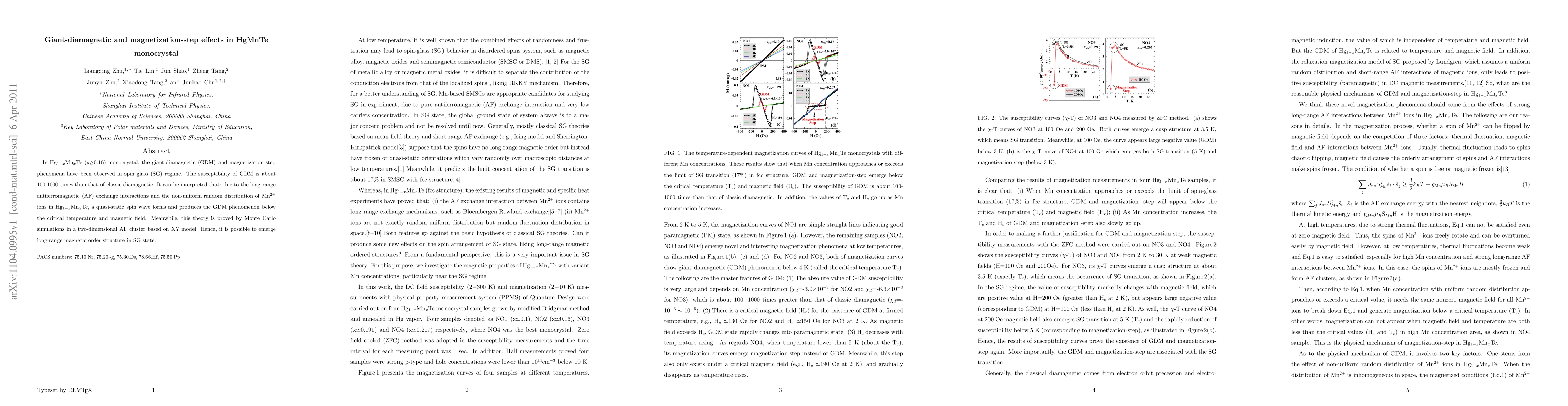 Researchers discovered giant-diamagnetic effects in HgMnTe monocrystals, 100-1000 times stronger than classic diamagnetic effects, due to long-range antiferromagnetic interactions and non-uniform Mn distribution. This phenomenon suggests the emergence of long-range magnetic order in spin glass states.