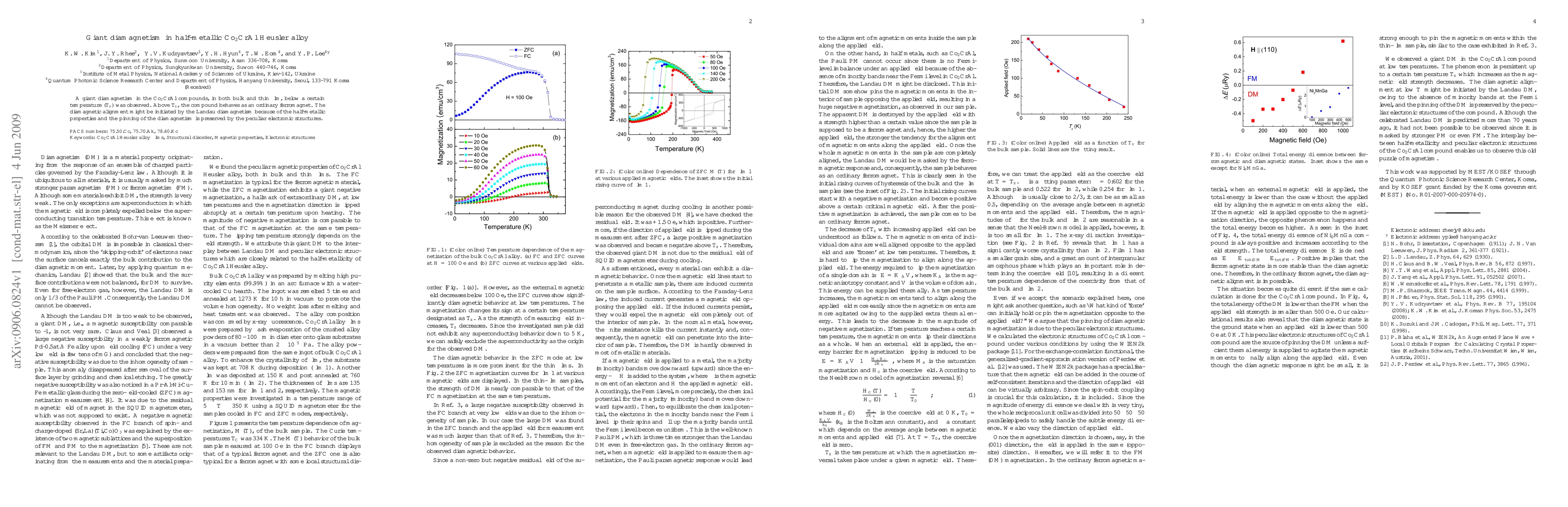 A giant diamagnetism in the Co$_{2}$CrAl compounds, in both bulk and thin film, below a certain temperature ($T_z$) was observed. Above $T_z$, the compound behaves as an ordinary ferromagnet. The diamagnetic alignment might be initiated by the Landau diamagnetism because of the half-metallic properties and the pinning of the diamagnetism is preserved by the peculiar electronic structures.