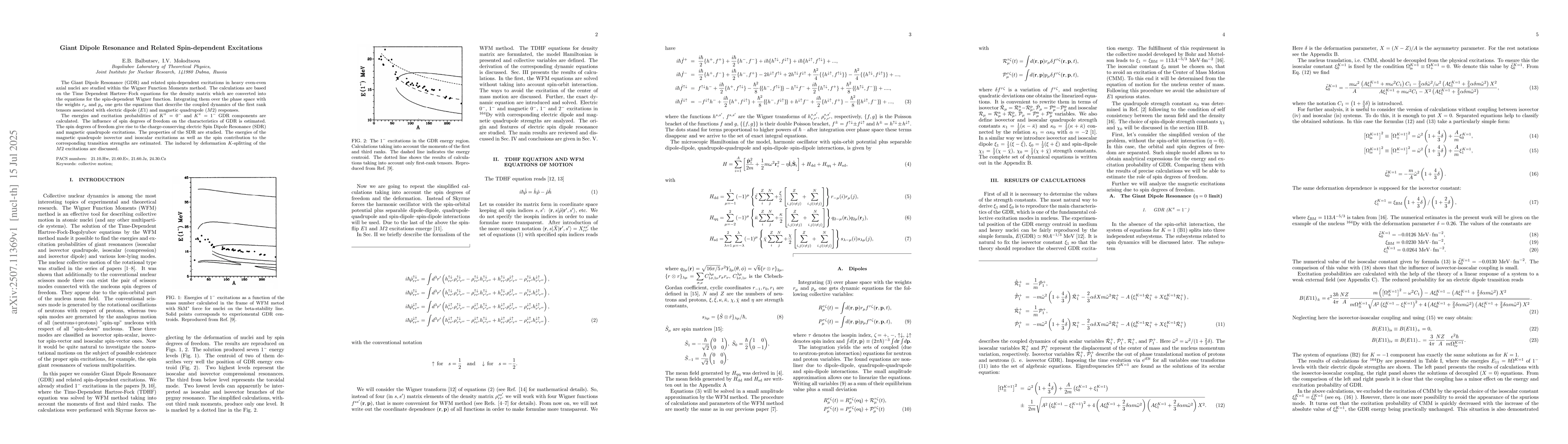 The Giant Dipole Resonance (GDR) and related spin-dependent excitations in heavy even-even axial nuclei are studied within the Wigner Function Moments method. The calculations are based on the Time Dependent Hartree-Fock equations for the density matrix which are converted into the equations for the spin-dependent Wigner function. Integrating them over the phase space with the weights $r_\mu$ and $p_\mu$ one gets the equations that describe the coupled dynamics of the first rank tensors associated with electric dipole ($E1$) and magnetic quadrupole ($M2$) responses. The energies and excitation probabilities of the $K^\pi=0^-$ and $K^\pi=1^-$ GDR components are calculated. The influence of spin degrees of freedom on the characteristics of GDR is estimated. The spin degrees of freedom give rise to the charge-conserving electric Spin Dipole Resonance (SDR) and magnetic quadrupole excitations. The properties of the SDR are studied. The energies of the magnetic quadrupole isovector and isoscalar excitations as well as the spin contribution to the corresponding transition strengths are estimated. The induced by deformation $K$-splitting of the $M2$ excitations are discussed.