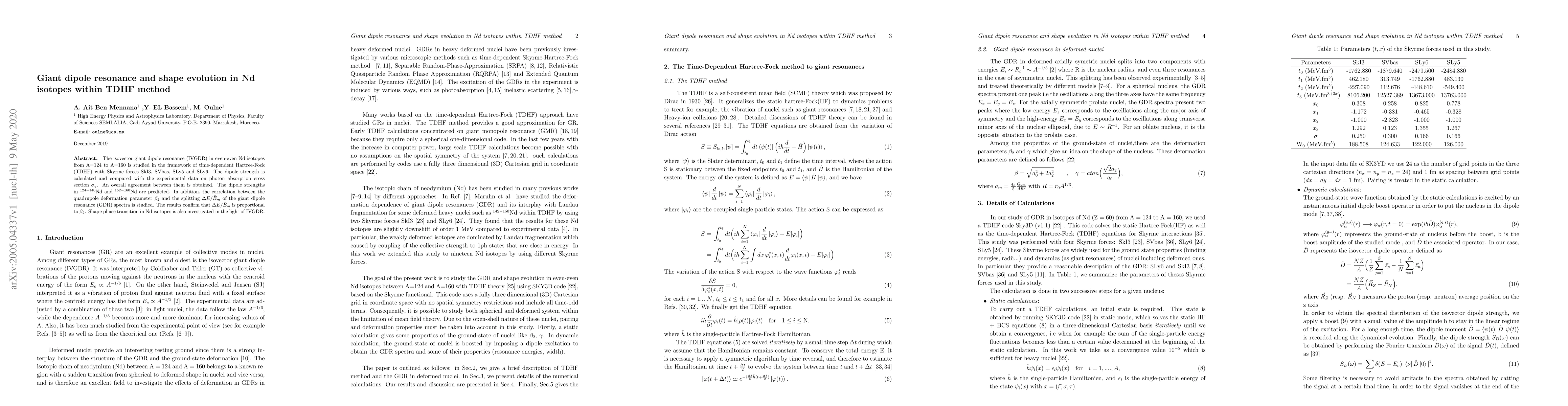 This study investigates the isovector giant dipole resonance in Nd isotopes using the time-dependent Hartree-Fock method, finding agreement between theoretical and experimental photon absorption data. The research also correlates the splitting of GDR spectra with the quadrupole deformation parameter, confirming a proportional relationship and exploring shape evolution in Nd isotopes.