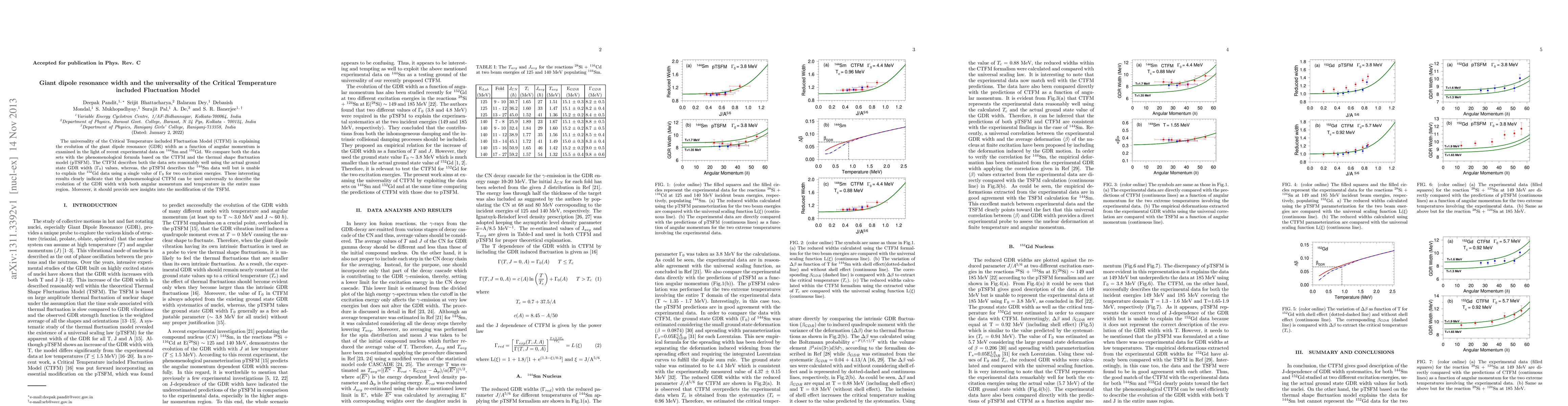 This paper examines the Critical Temperature included Fluctuation Model (CTFM) for explaining the evolution of the giant dipole resonance width in $^{144}$Sm and $^{152}$Gd. The CTFM provides a universal description of the GDR width as a function of angular momentum, outperforming the thermal shape fluctuation model (pTSFM) for both isotopes.