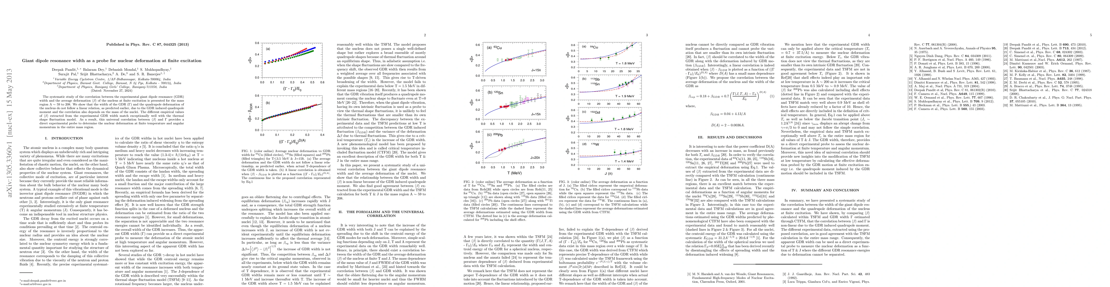 This study investigates the correlation between the giant dipole resonance width and nuclear deformation at finite excitation, revealing that the width does not follow a linear relation with deformation due to induced quadrupole moments and mass dependence. The empirical deformation values derived from GDR width align well with the thermal shape fluctuation model, offering a direct experimental method to determine nuclear deformation across various masses.