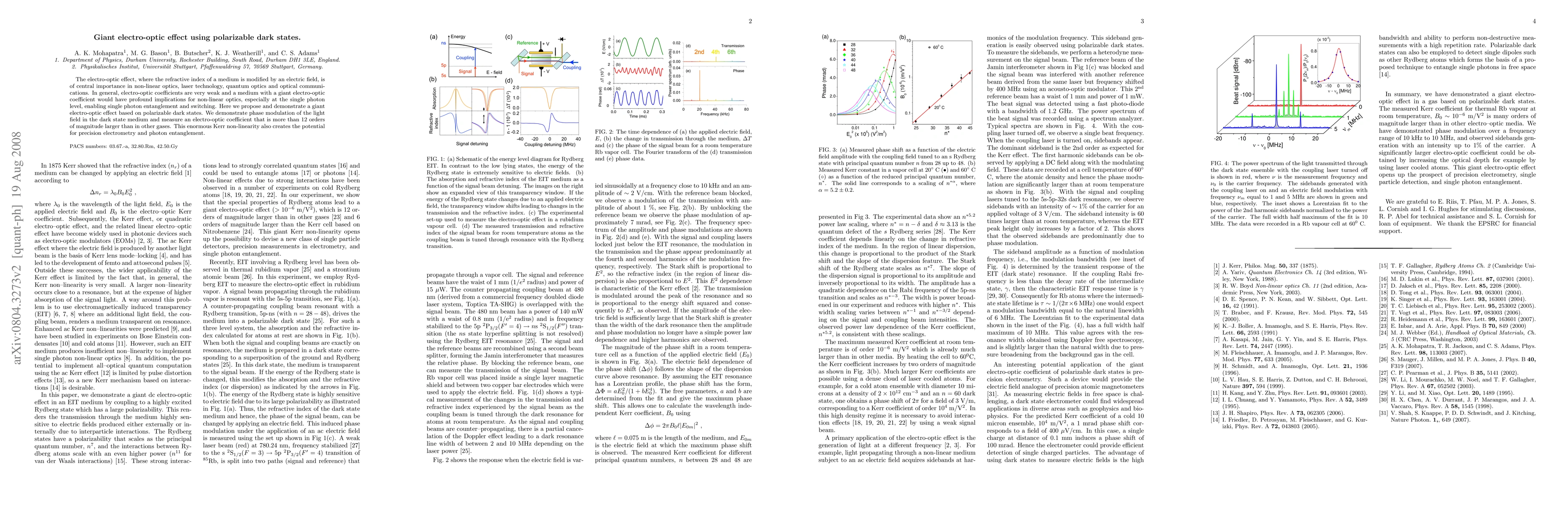 This paper proposes and demonstrates a giant electro-optic effect using polarizable dark states, achieving an electro-optic coefficient over 12 orders of magnitude larger than in typical gases, which could revolutionize non-linear optics and enable single photon entanglement and switching.