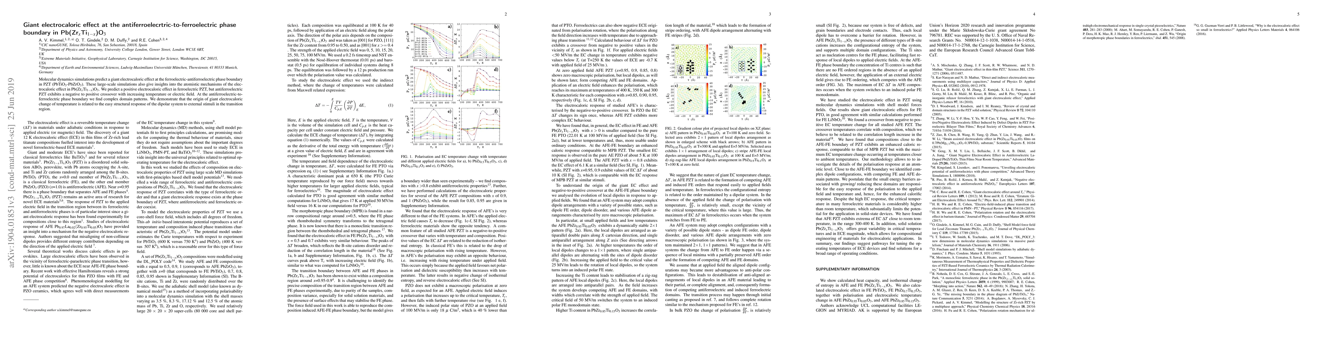 This paper reports on molecular dynamics simulations revealing a giant electrocaloric effect at the antiferroelectric-to-ferroelectric phase boundary in PZT materials. The simulations provide insights into the atomistic mechanisms and show that the transition region's structural response to external stimuli leads to significant temperature changes.