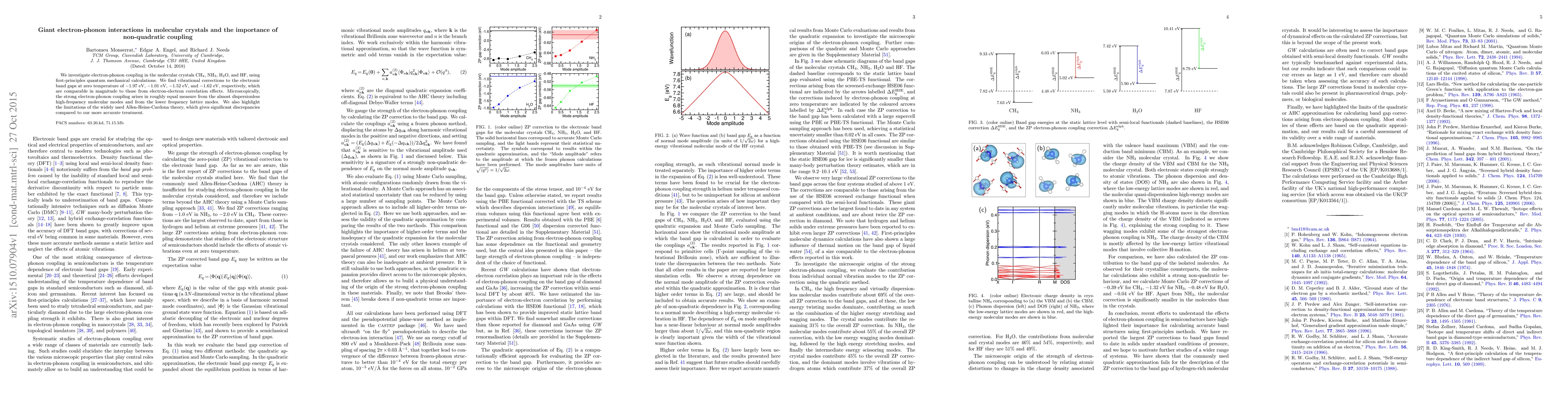 Research reveals strong electron-phonon coupling in molecular crystals, with corrections to band gaps comparable to those from electron-electron correlation effects. A more accurate treatment than the Allen-Heine-Cardona theory is proposed as an alternative.