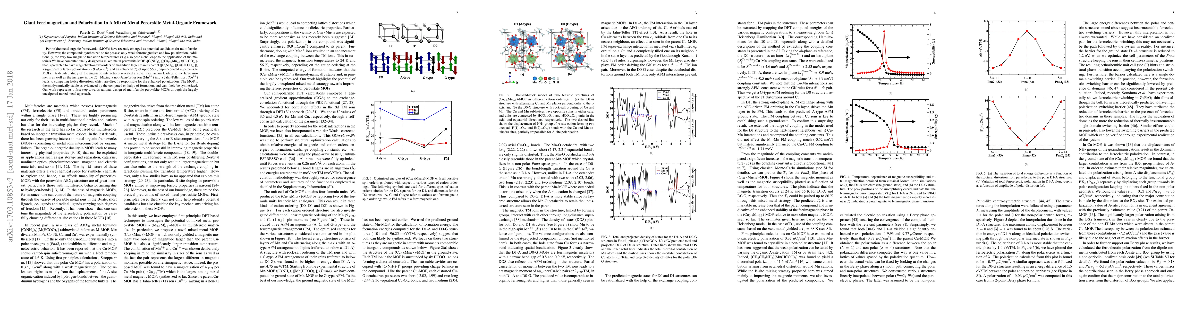 This paper computationally designs a mixed metal perovskite MOF, [C(NH2)3][(Cu0.5Mn0.5)(HCOO)3], which exhibits significantly enhanced ferrimagnetism, polarization, and magnetic transition temperature compared to its parent compound. The study reveals a novel mechanism involving competing lattice distortions due to mixed metal ions, paving the way for the rational design of advanced multiferroic materials.