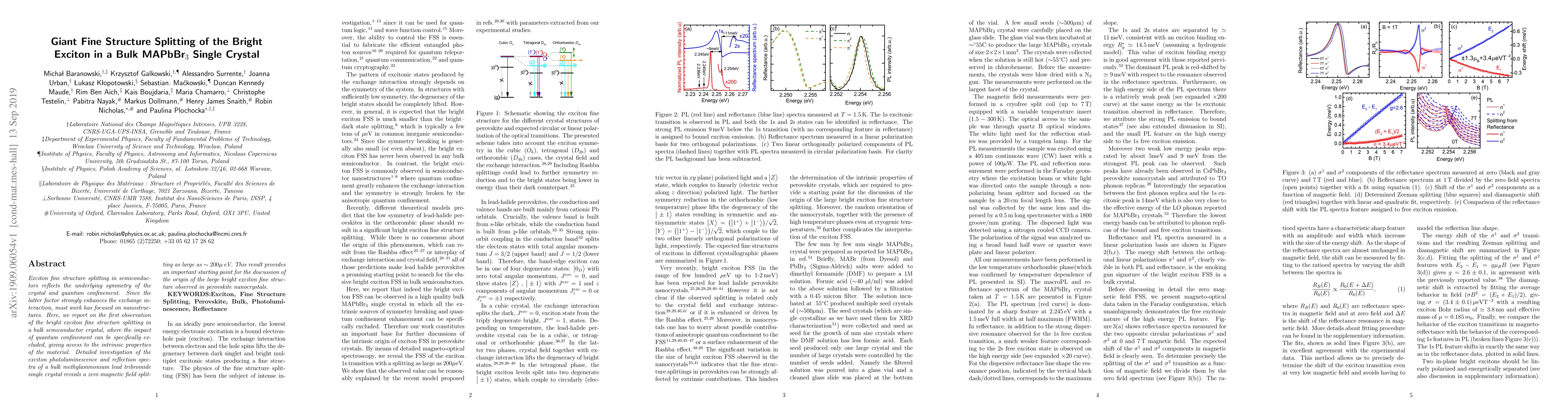 Exciton fine structure splitting in semiconductors reflects the underlying symmetry of the crystal and quantum confinement. Since the latter factor strongly enhances the exchange interaction, most work has focused on nanostructures. Here, we report on the first observation of the bright exciton fine structure splitting in a bulk semiconductor crystal, where the impact of quantum confinement can be specifically excluded, giving access to the intrinsic properties of the material. Detailed investigation of the exciton photoluminescence and reflection spectra of a bulk methylammonium lead tribromide single crystal reveals a zero magnetic field splitting as large as $\sim 200\mu$eV. This result provides an important starting point for the discussion of the origin of the large bright exciton fine structure observed in perovskite nanocrystals.